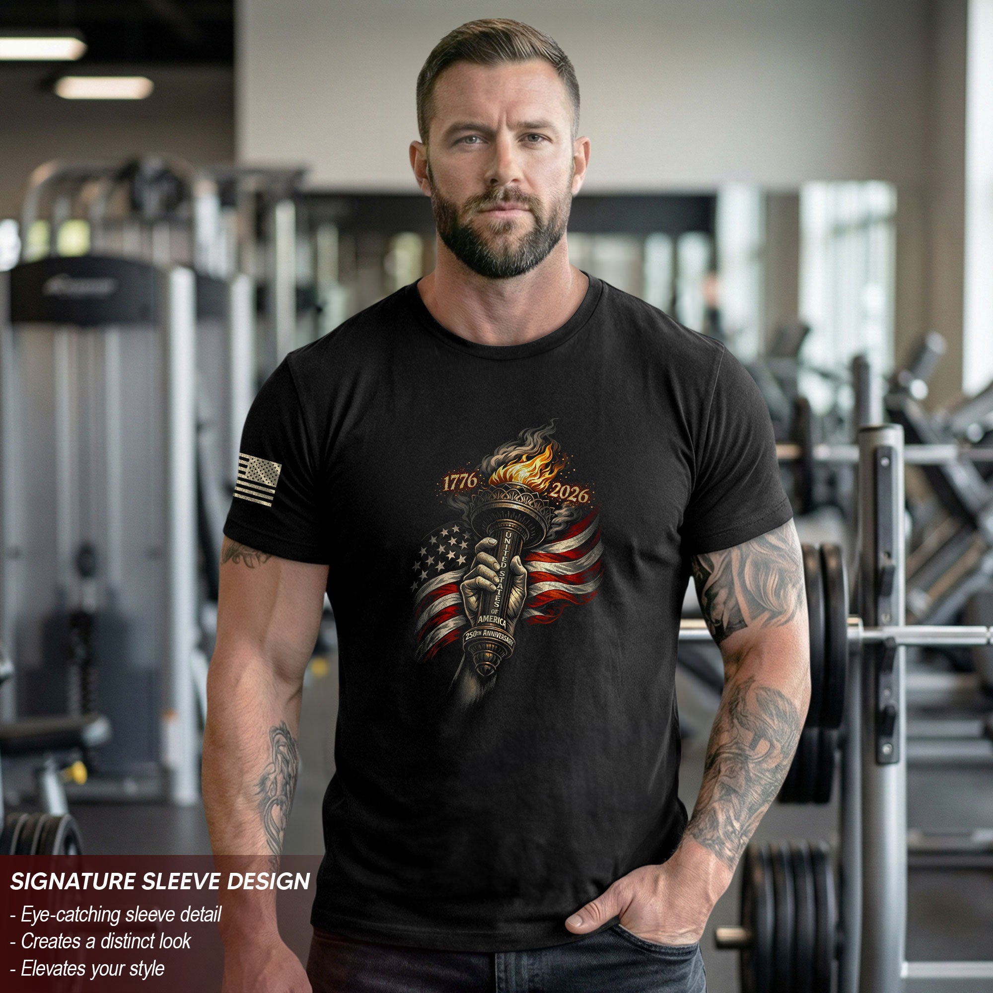 1776-2026 250th Anniversary Patriotic T-Shirt Statue of Liberty Torch USA Flag Tee