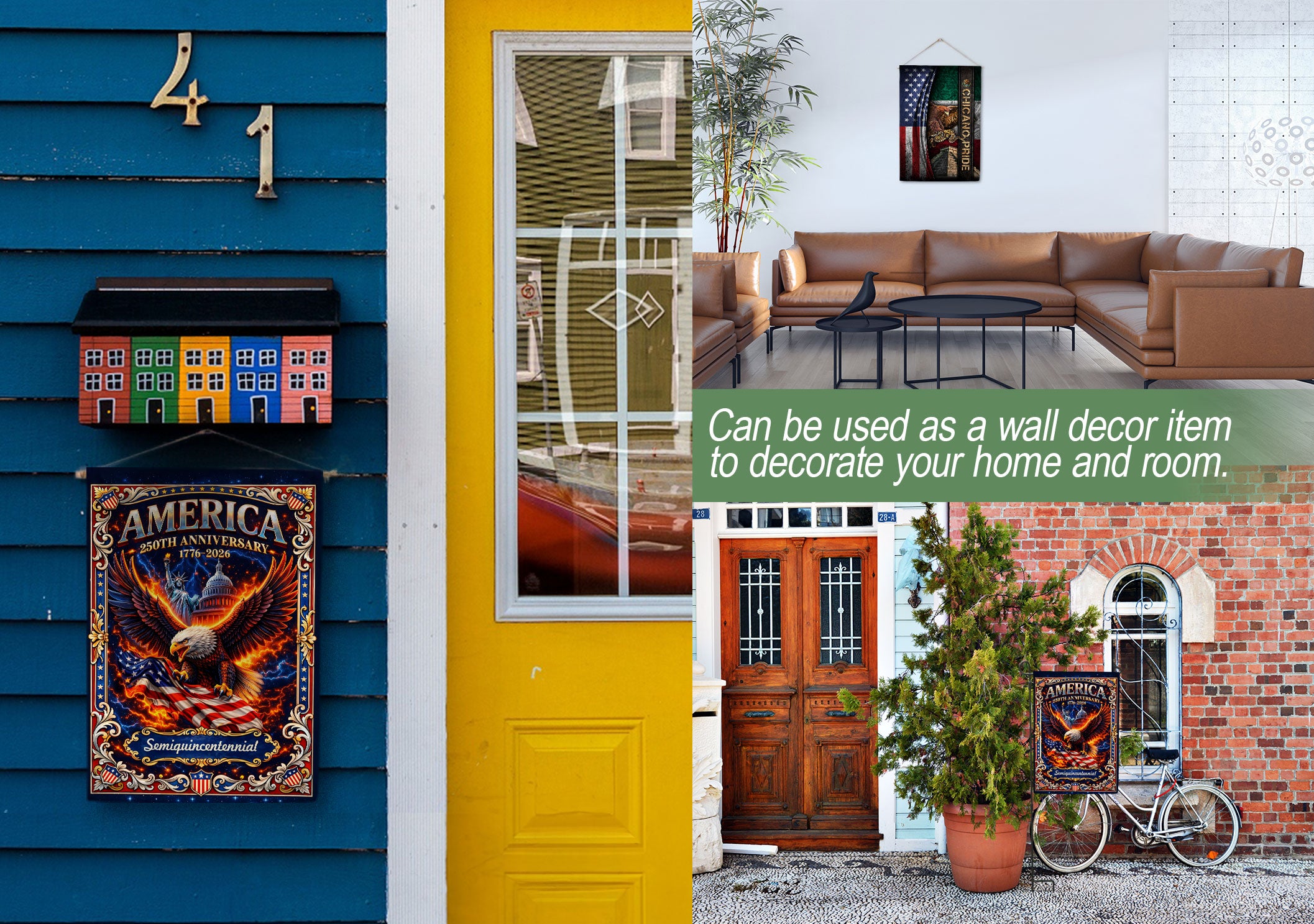 Celebrate America’s 250th anniversary from 1776 to 2026 with this striking double-sided house flag. Featuring a majestic bald eagle soaring above the iconic United States Capitol and the Statue of Liberty, this banner embodies national pride, unity, freedom, and strength. Perfect for displaying on porches, gardens, or flagpoles to honor the nation’s enduring legacy. Crafted for durability and vivid colors that withstand outdoor conditions, it’s an ideal patriotic decoration for holidays, Independence Day, or everyday display. Double-sided printing ensures clear visibility from both sides.
