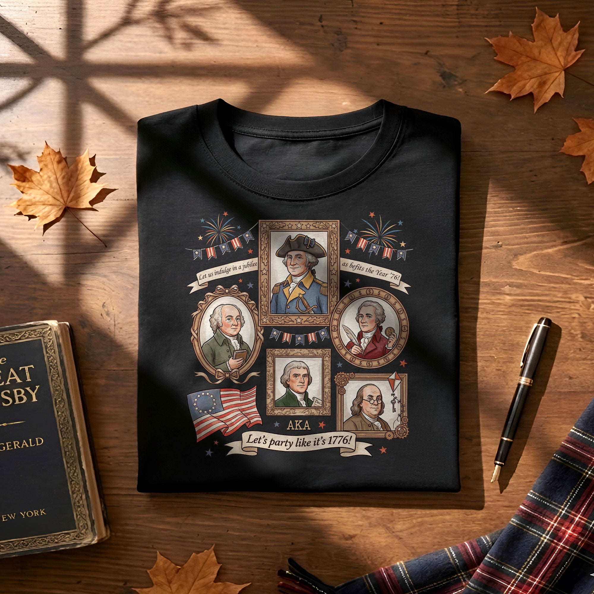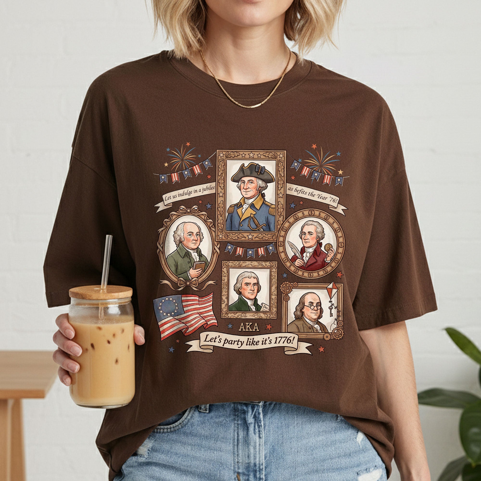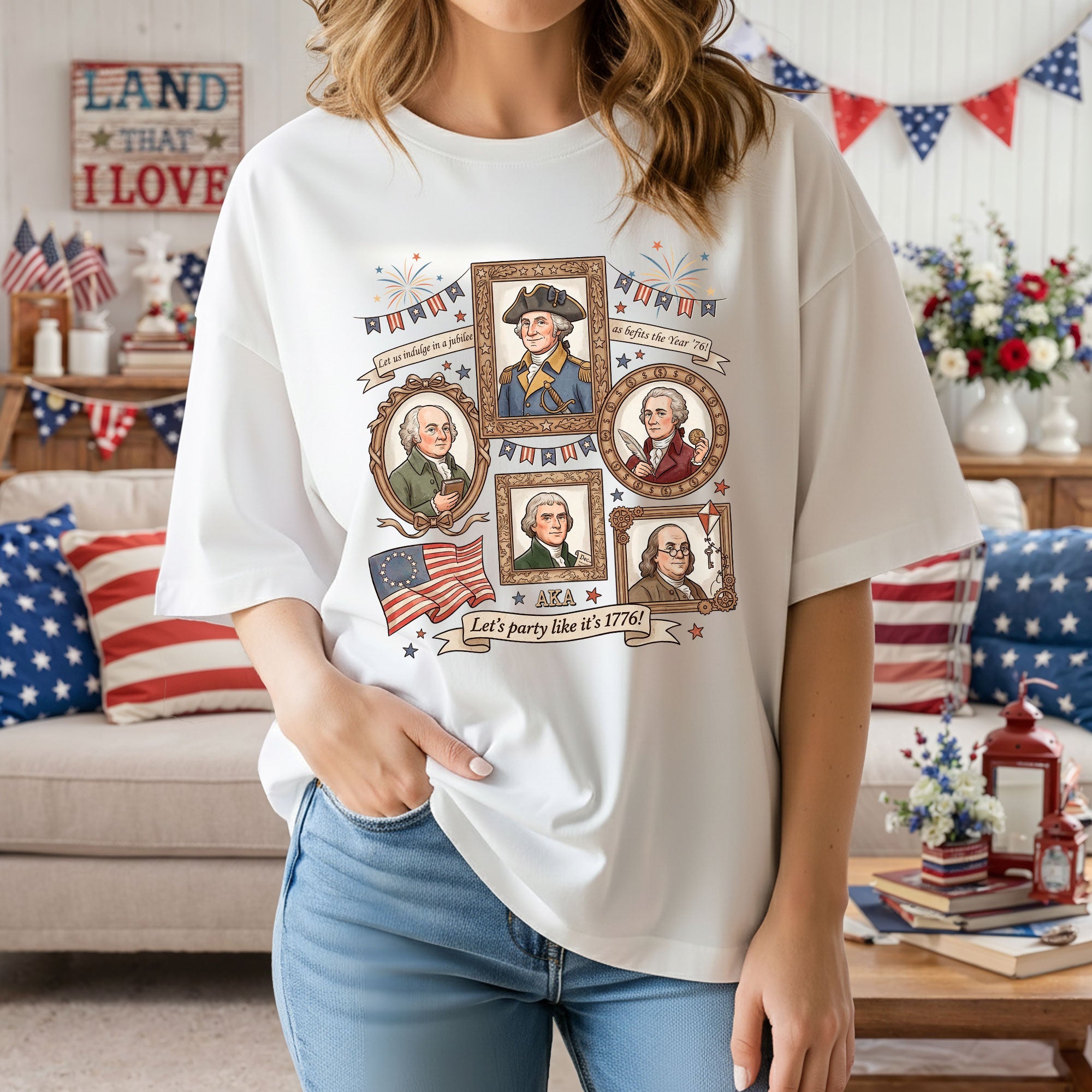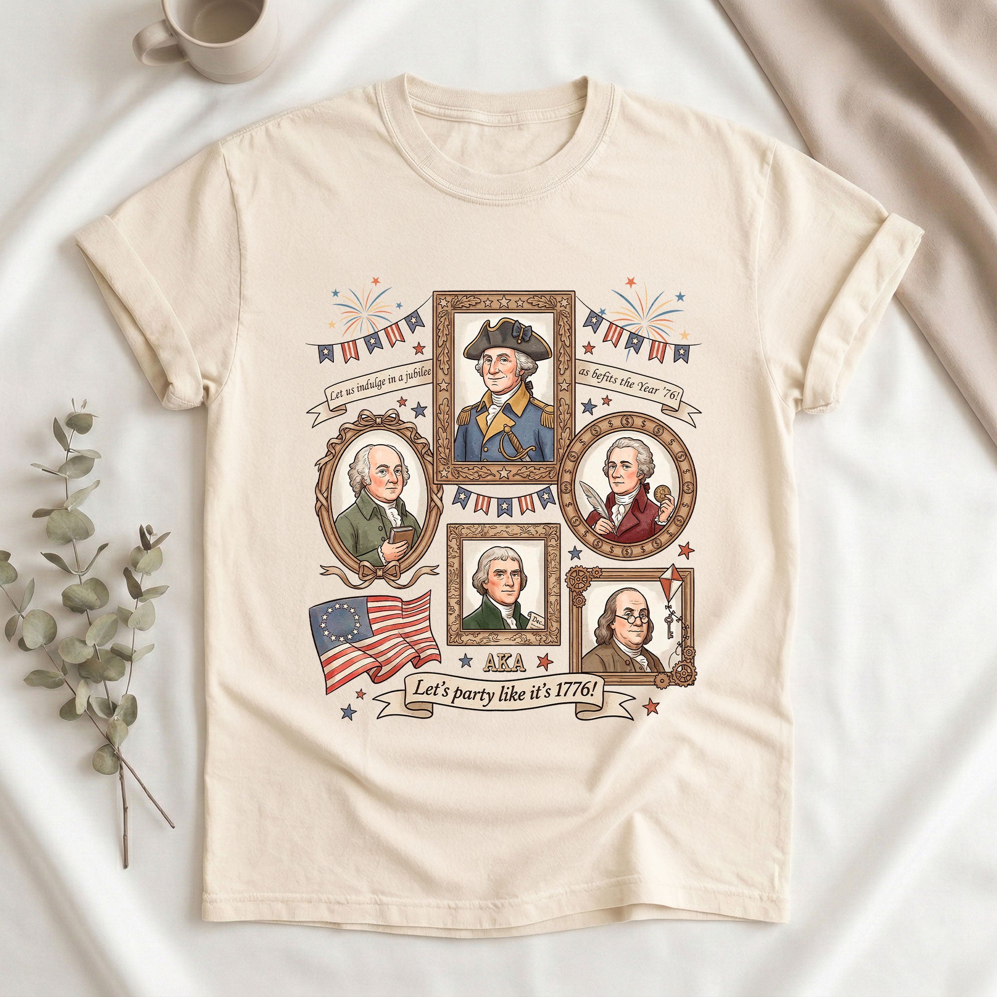Celebrate American independence with this vintage-style 1776 Founding Fathers T-shirt. Featuring a retro graphic design inspired by the revolutionary spirit of 1776, this patriotic shirt captures the essence of USA history and the bold declaration of freedom. Crafted from soft, breathable cotton for all-day comfort, it’s ideal for history enthusiasts, Fourth of July celebrations, Memorial Day events, or casual wear that shows your patriotic pride. The ‘Let’s Party Like It’s 1776′ slogan adds a fun, historical twist perfect for barbecues, parades, or everyday expression of American heritage. Available in multiple sizes for men, this durable T-shirt maintains its vibrant colors wash after wash. Embrace the founding fathers’ legacy and wear your love for the USA with style.