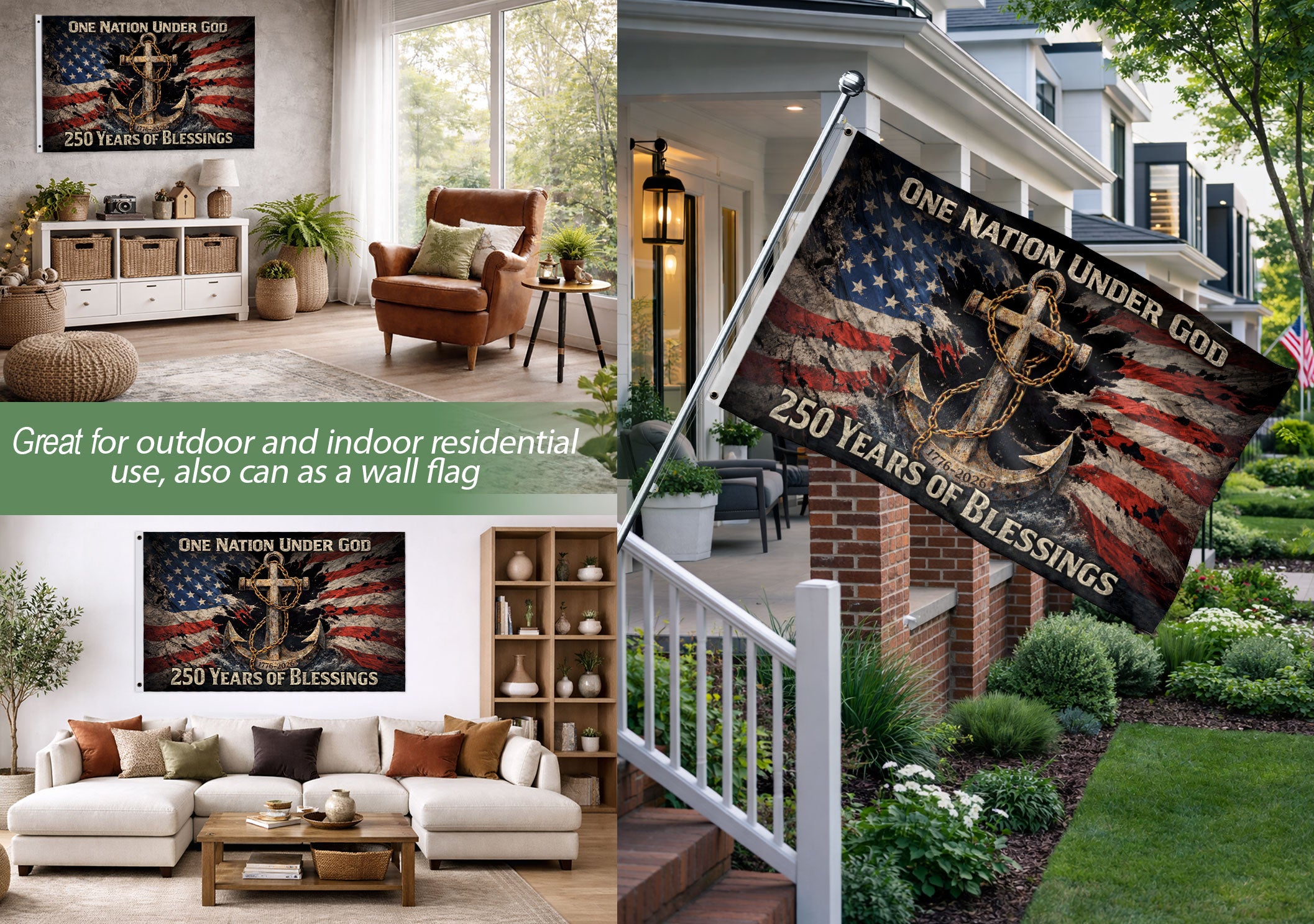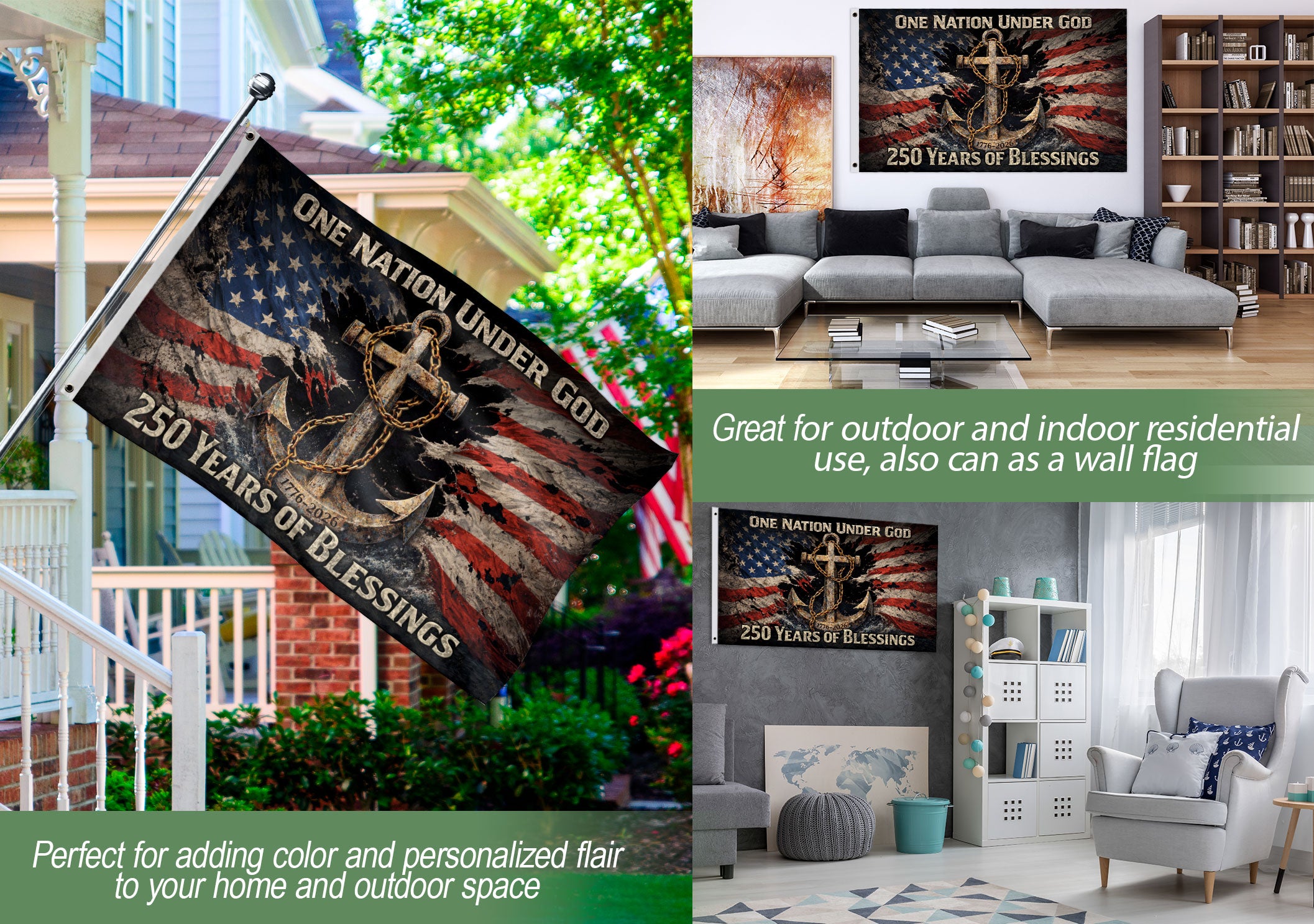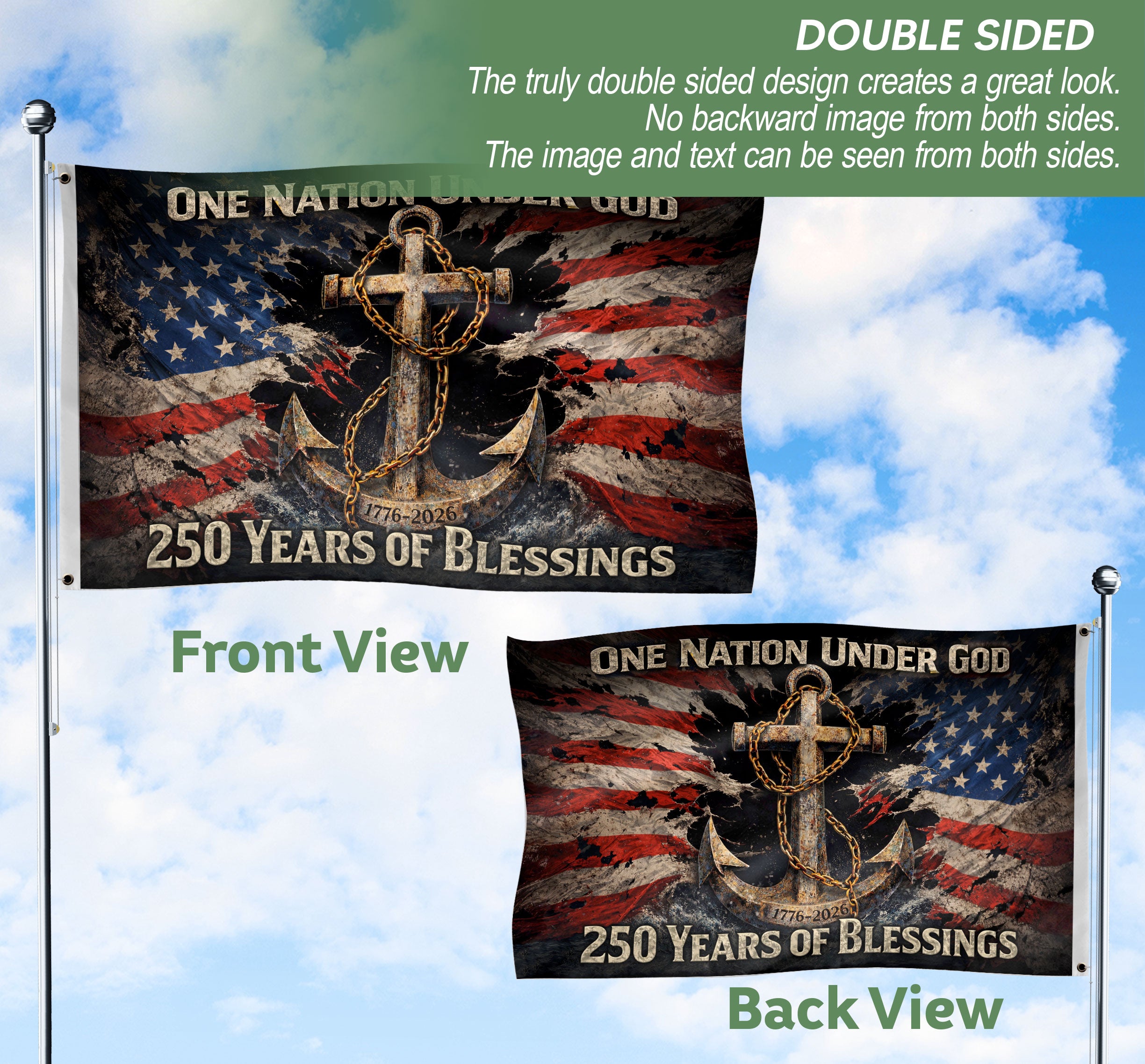 250 Years of Blessings American Flag – Christian Patriotic One Nation Under God Double Sided Design
