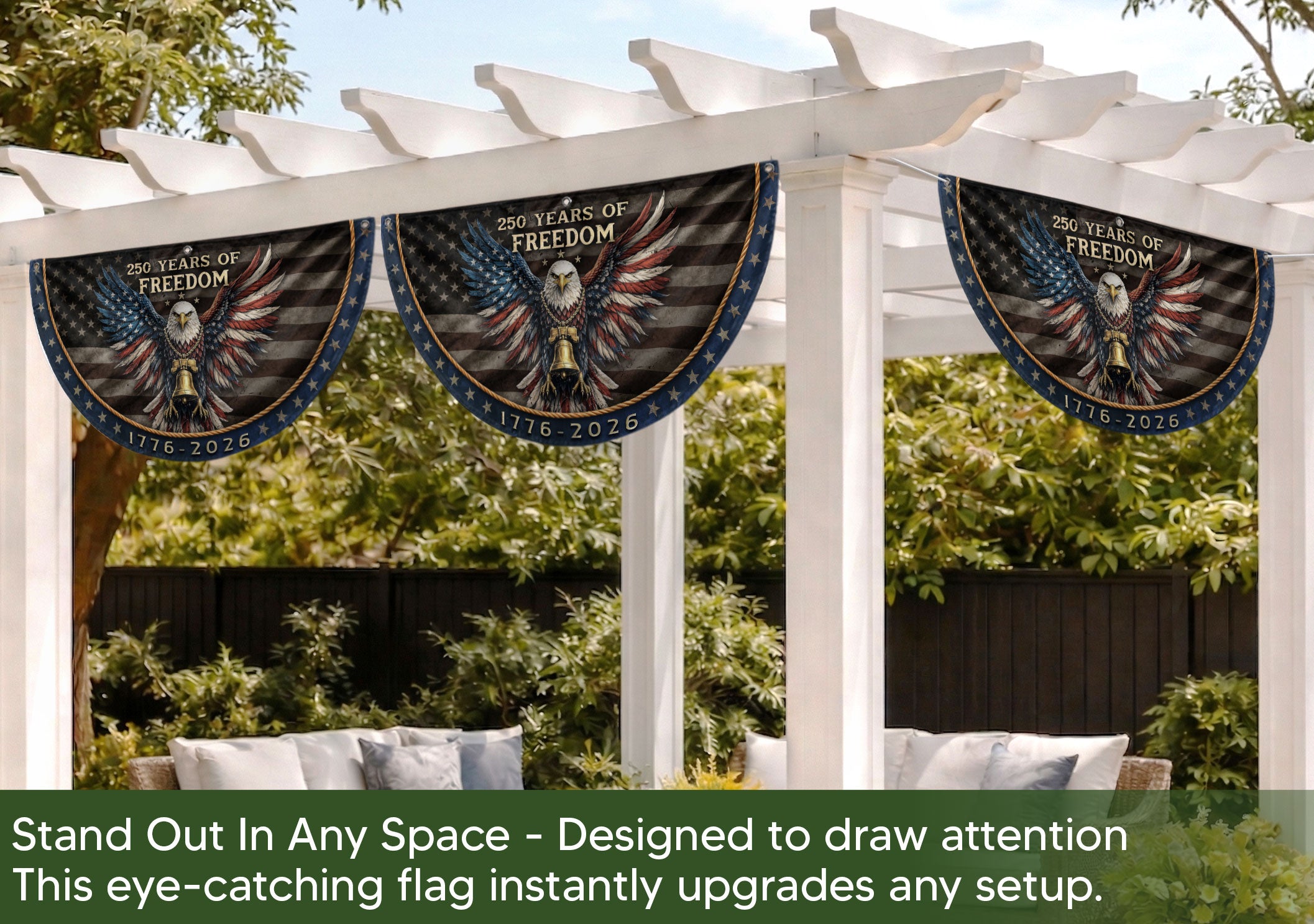 250 Years of Freedom Fence Flag 1776-2026 Patriotic Eagle Liberty Bell Banner