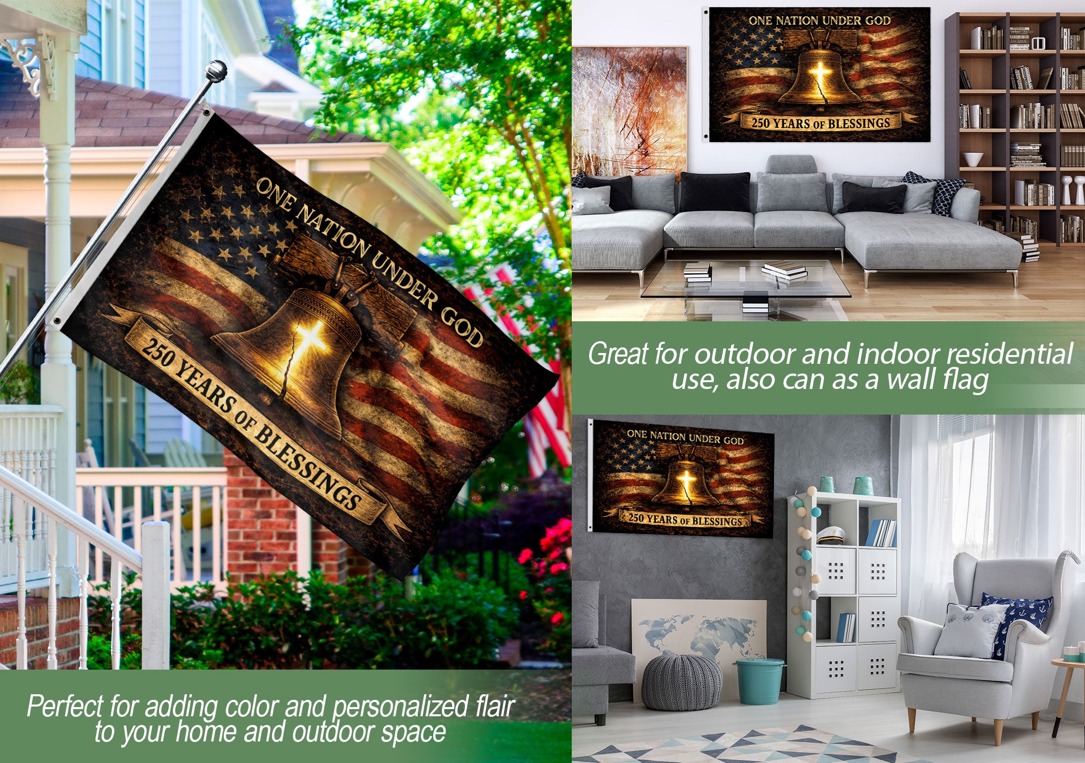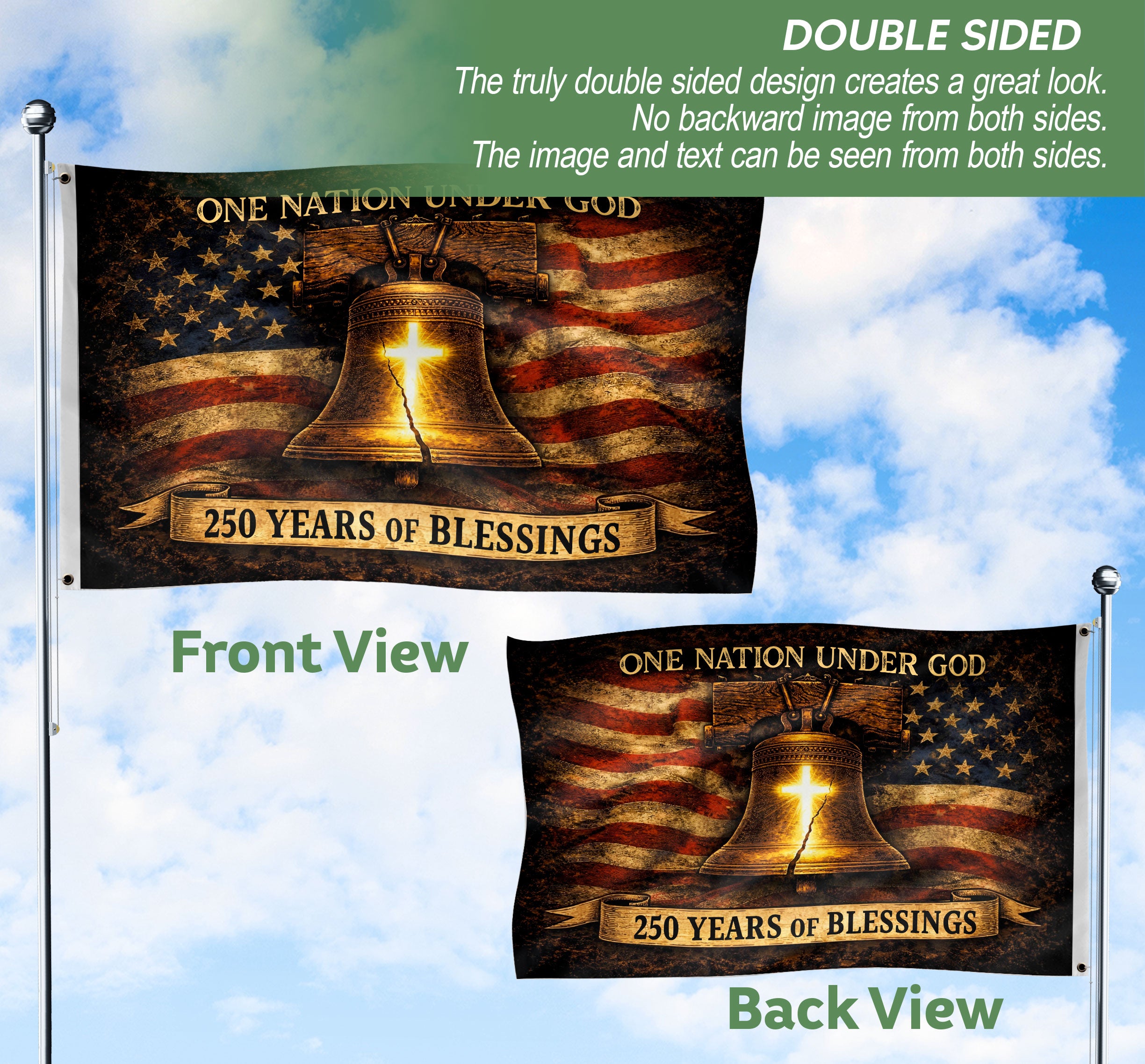 Celebrate America’s 250th anniversary with this commemorative flag honoring the Liberty Bell heritage and Holy Cross faith and freedom. Crafted as a powerful symbol of gratitude for generations of liberty, this flag beautifully captures the harmony of faith and freedom throughout the nation’s 250-year legacy. Perfect for patriotic displays, home decor, outdoor flagpoles, or events commemorating U.S. history. Durable polyester construction ensures vibrant colors and weather resistance for long-lasting pride. Ideal for history enthusiasts, veterans, churches, and freedom lovers. Measures standard flag size for versatile use.