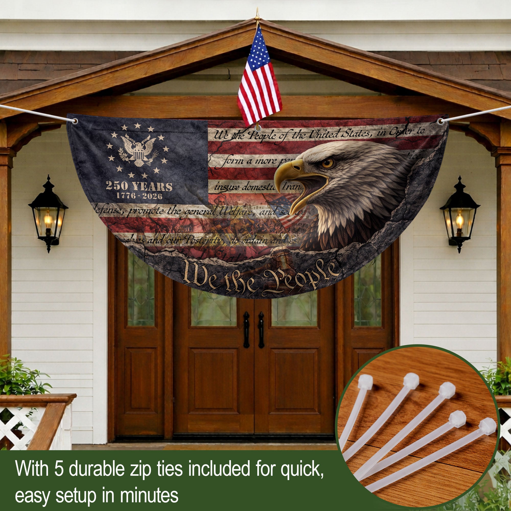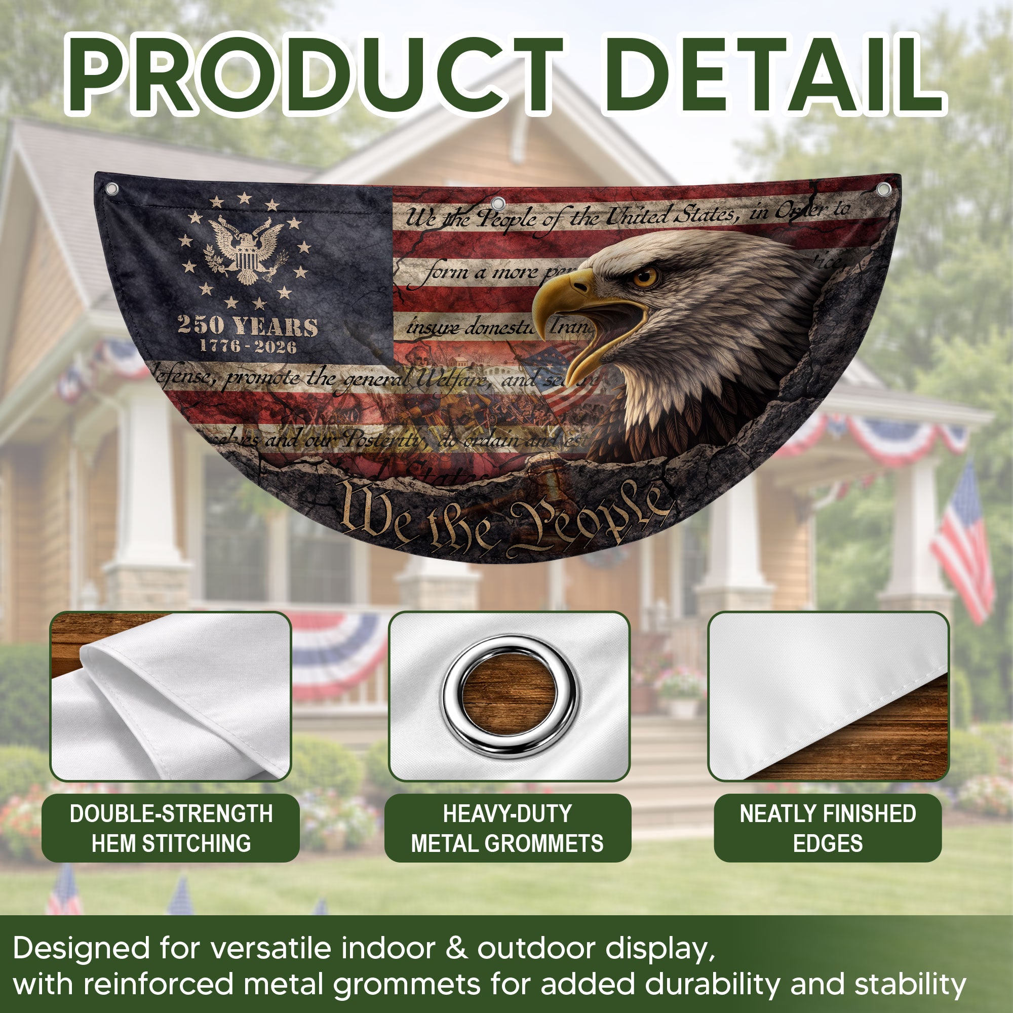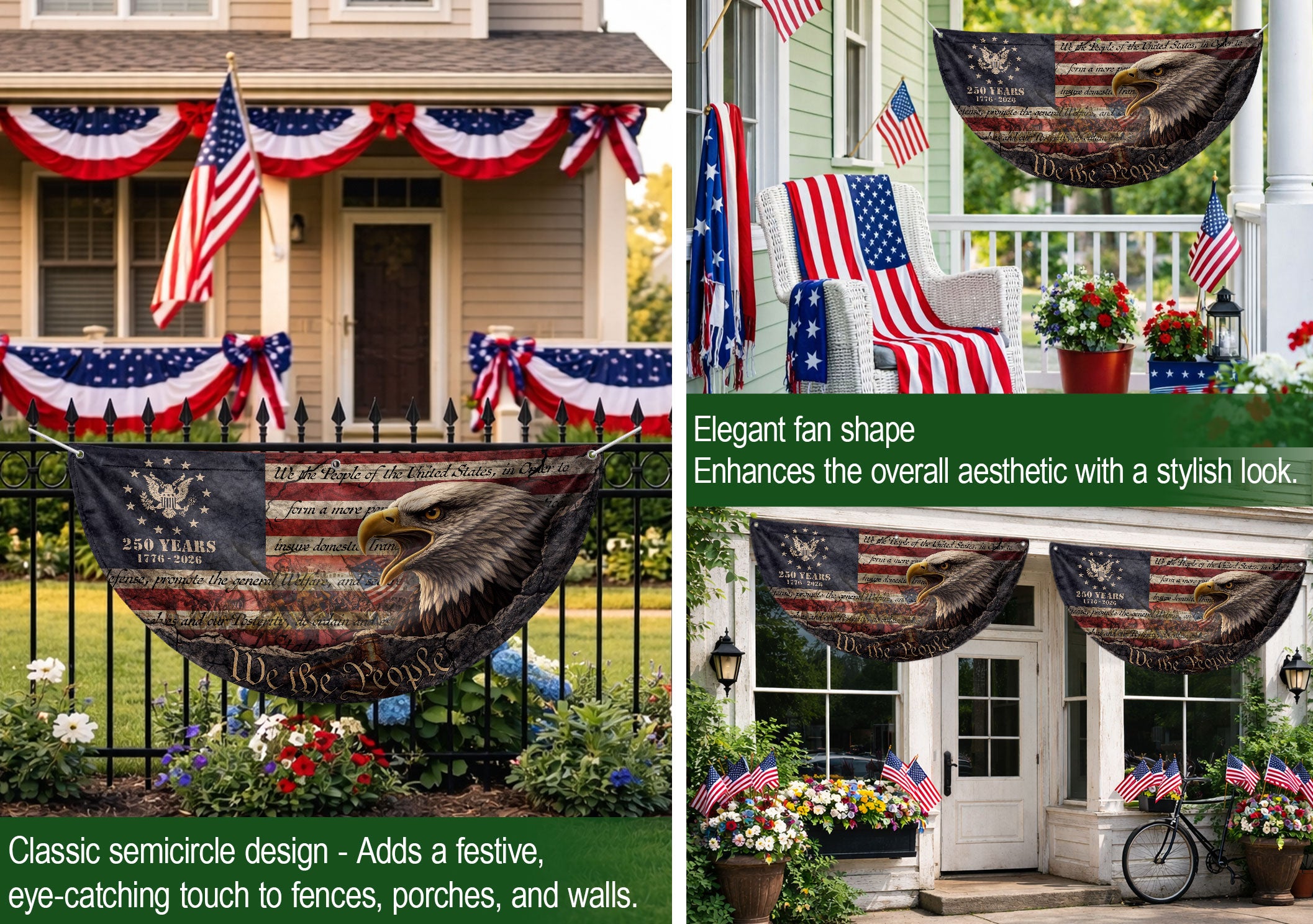 250th Anniversary USA Fence Flag 1776-2026 Eagle Patriotic Banner