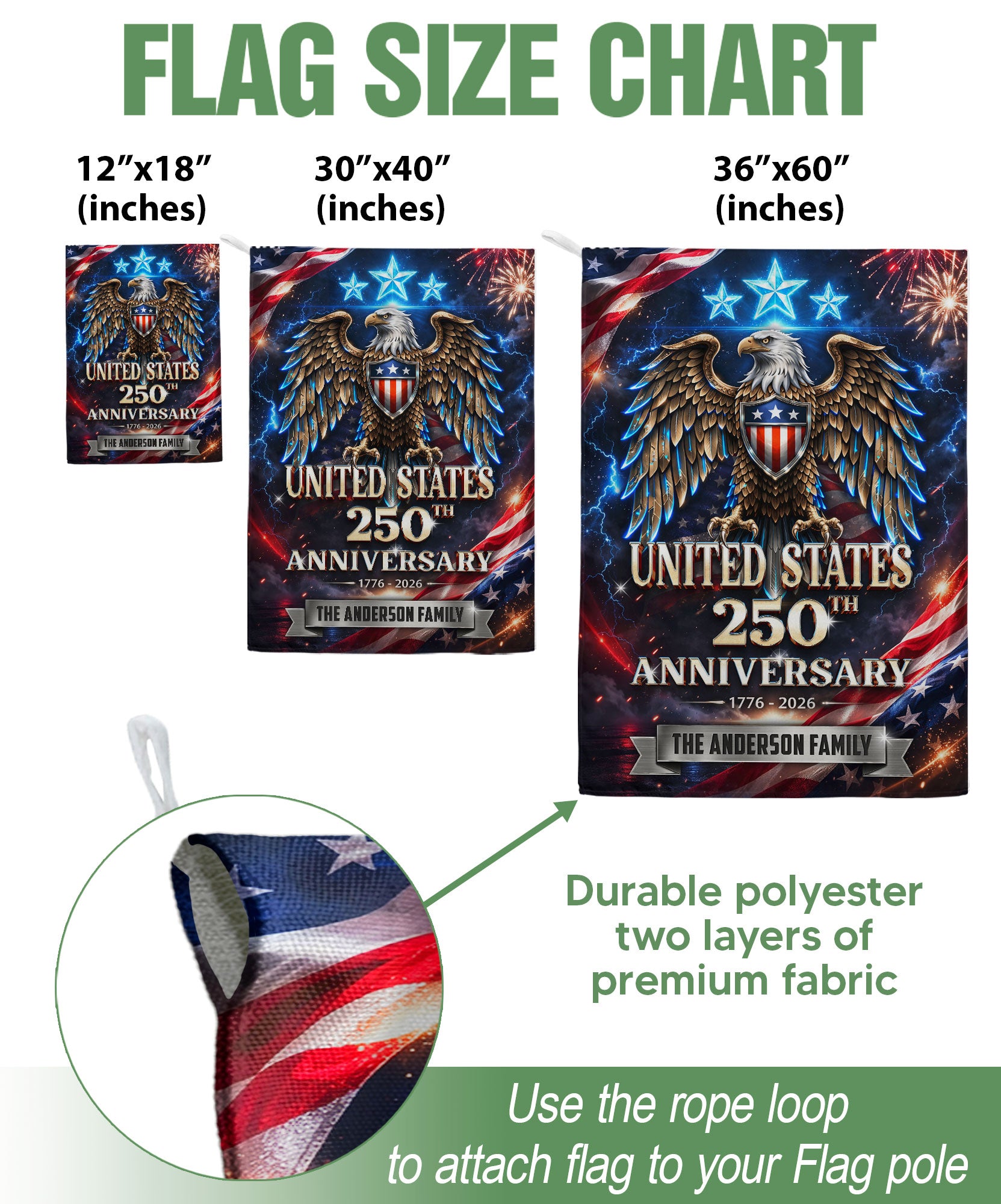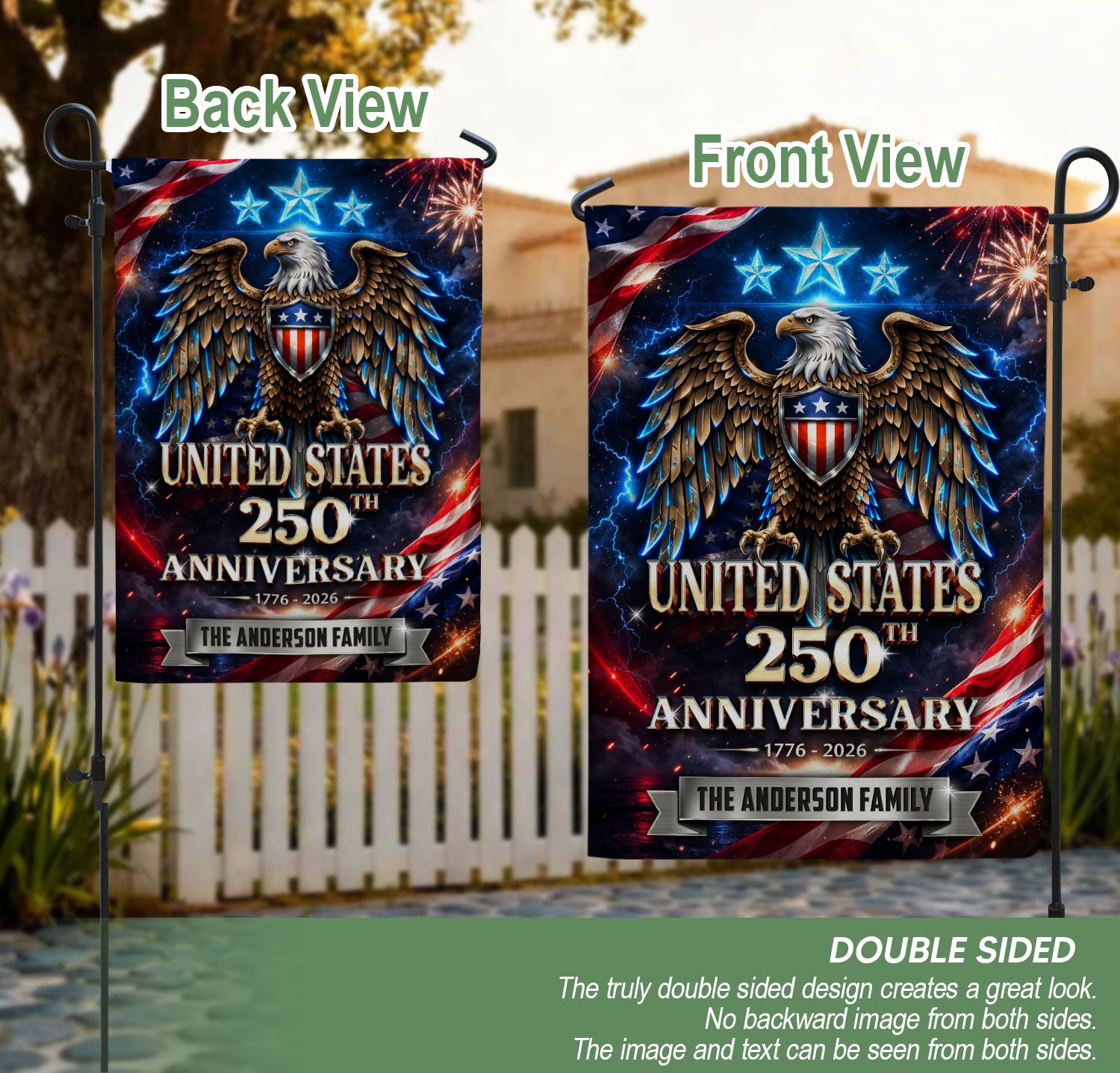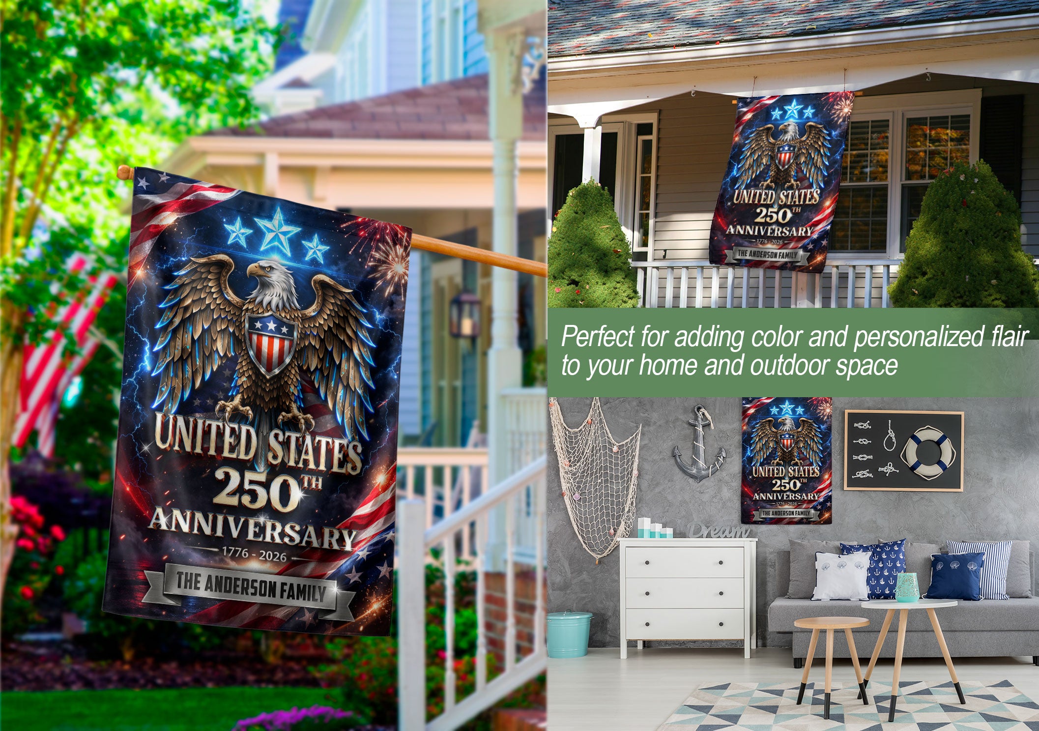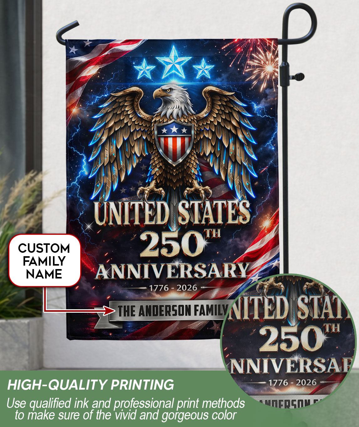 250th Anniversary USA Garden Flag Custom Family Name Eagle Stars 1776-2026