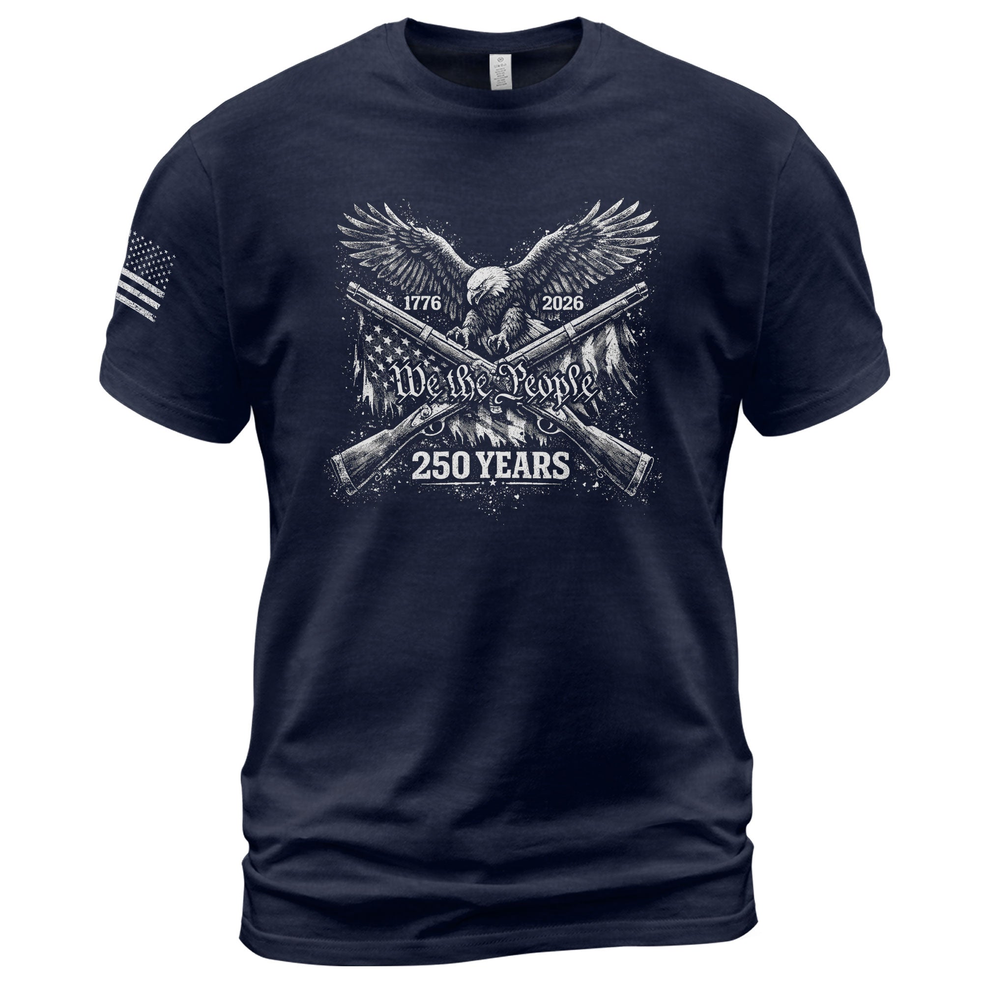 America 250th Anniversary T-Shirt 1776-2026 We The People Eagle Crossed Rifles Tee