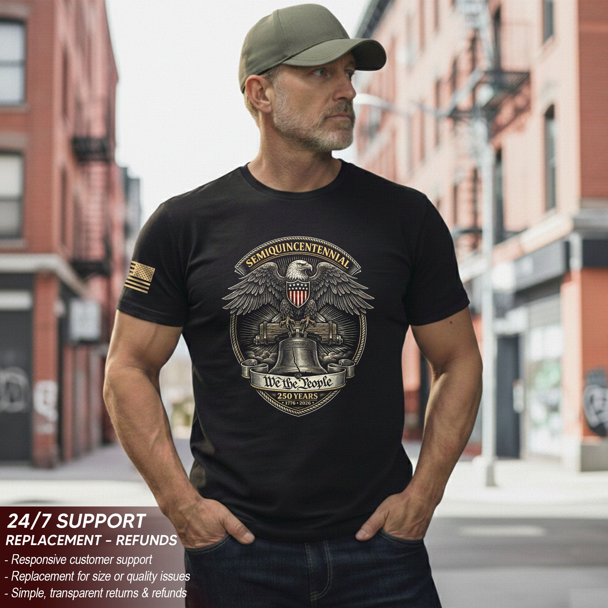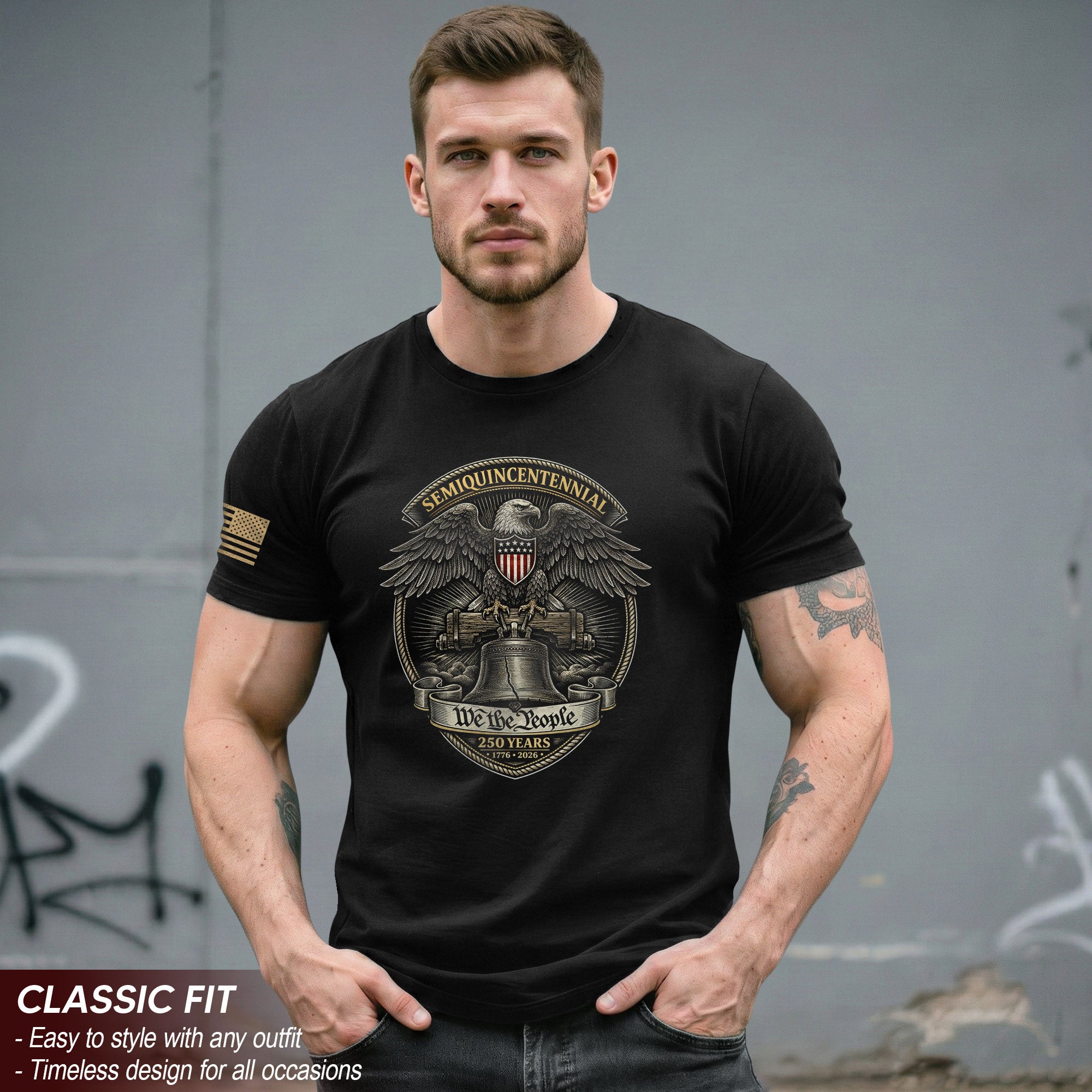 Celebrate 250 years of American independence with this patriotic T-shirt honoring the journey from 1776 to 2026. Featuring the iconic Liberty Bell, a majestic eagle, and the timeless words ‘We The People,’ this tee captures the enduring spirit of the nation. Crafted from soft, breathable cotton for all-day comfort, it’s perfect for Fourth of July celebrations, historical events, veterans’ gatherings, or everyday wear to show your pride. Available in multiple sizes for men, women, and unisex fit. Machine washable and durable for long-lasting wear. Embrace American history and unity with this bold, graphic design tee.