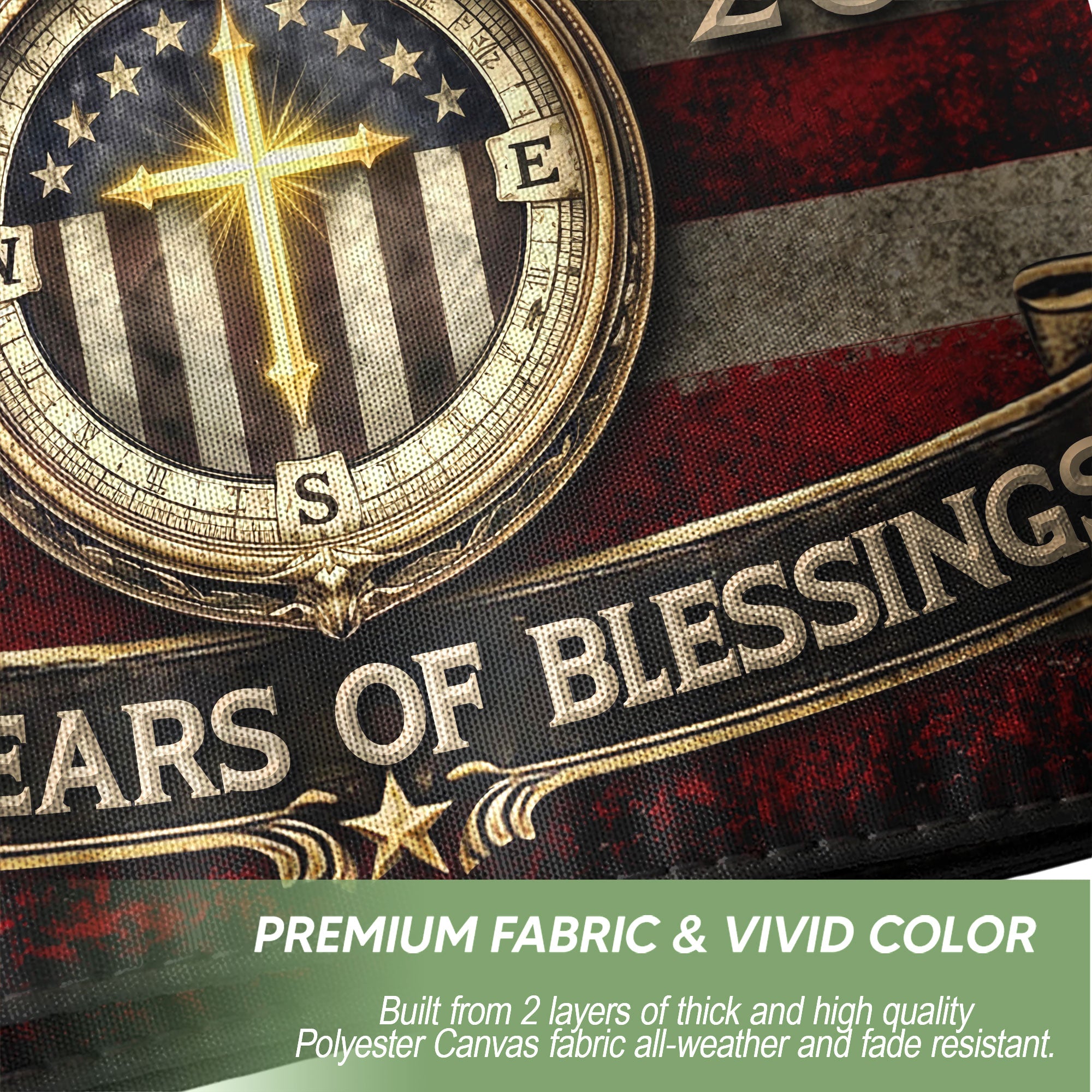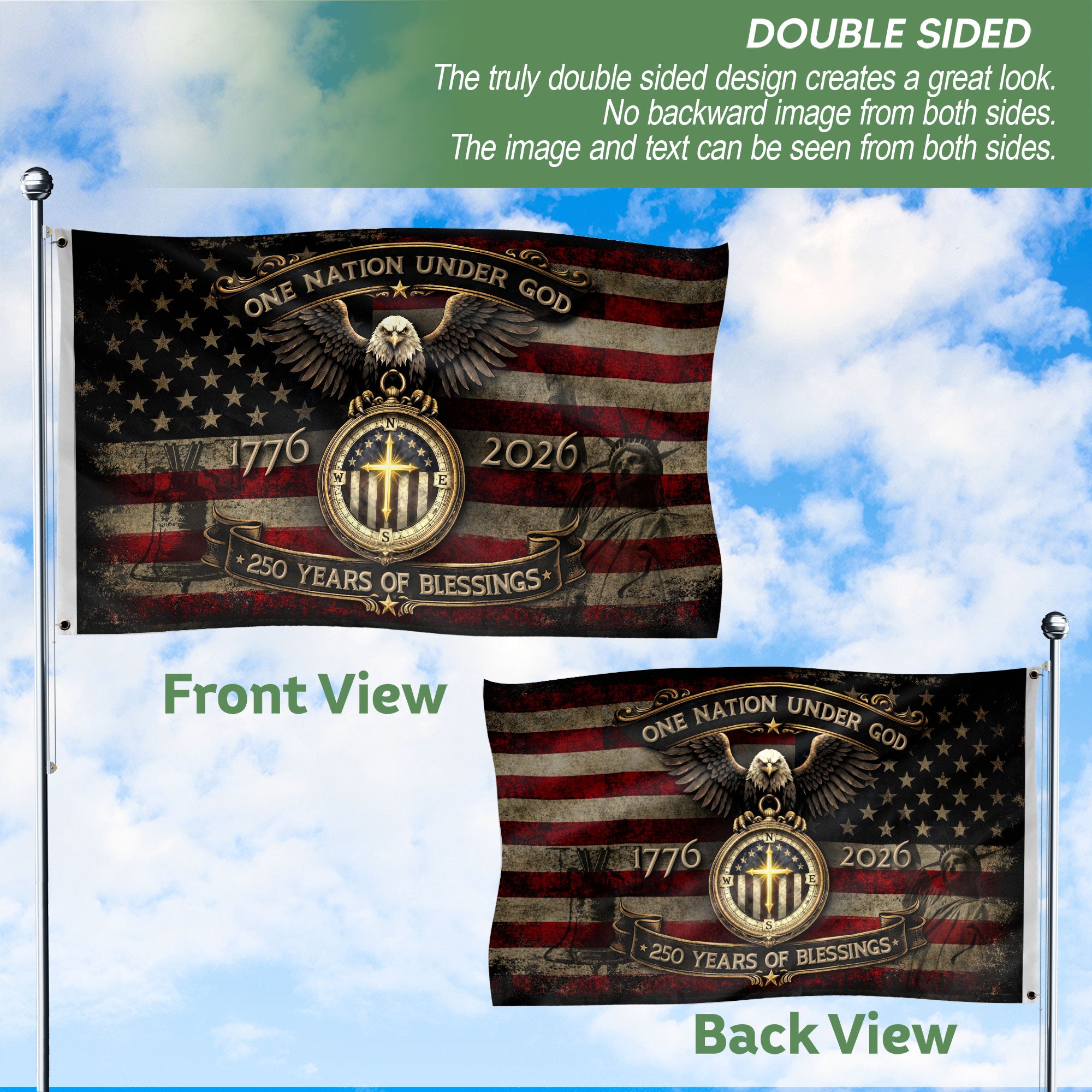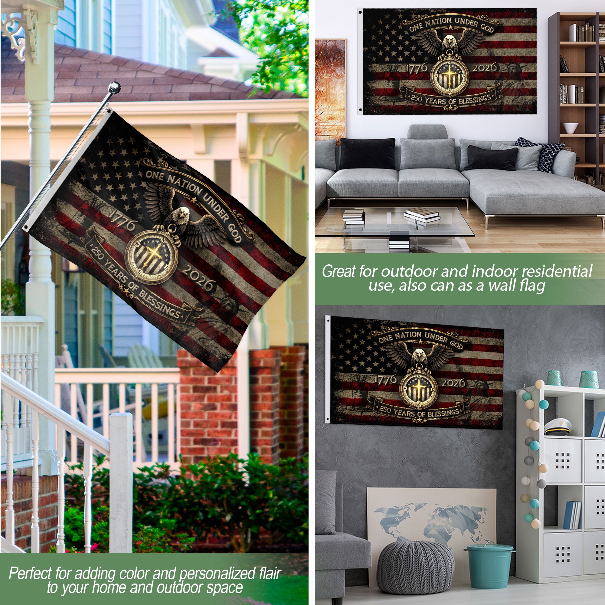 Celebrate 250 years of American freedom with this patriotic Christian garden flag. The bold design honors national pride and Christian faith, making it an ideal outdoor decoration for gardens, porches, patios, or yards. Crafted from durable, weather-resistant polyester fabric, it withstands wind, rain, and sun for long-lasting display. Double-sided printing delivers vibrant colors and clear messaging visible from any angle. Easy to hang on a standard garden flag pole (not included). Measuring 12.5 x 18 inches, it provides eye-catching presence. Perfect for Independence Day, Memorial Day, Fourth of July, or everyday patriotic and faith expression. Showcase your love for America and religious beliefs with this high-quality flag.