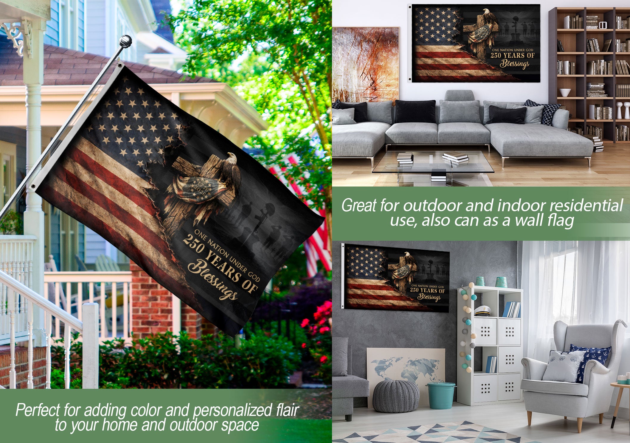 Celebrate America’s 250-year journey from 1776 to 2026 with this American Christian Freedom Flag, a patriotic garden flag designed for year-round outdoor display. Featuring bold patriotic motifs intertwined with Christian faith symbols, this durable yard decor reflects national pride, unity, and spiritual heritage. Crafted from weather-resistant polyester fabric, it withstands sun, rain, and wind, ensuring long-lasting vibrancy in your garden, lawn, or patio. Perfect for patriots, history enthusiasts, and faith-driven homeowners to showcase devotion to God and country. Easy to install on standard garden flag stands or poles (not included). Measures standard garden flag size for versatile placement. Ideal for Independence Day, Memorial Day, Fourth of July, or everyday display.