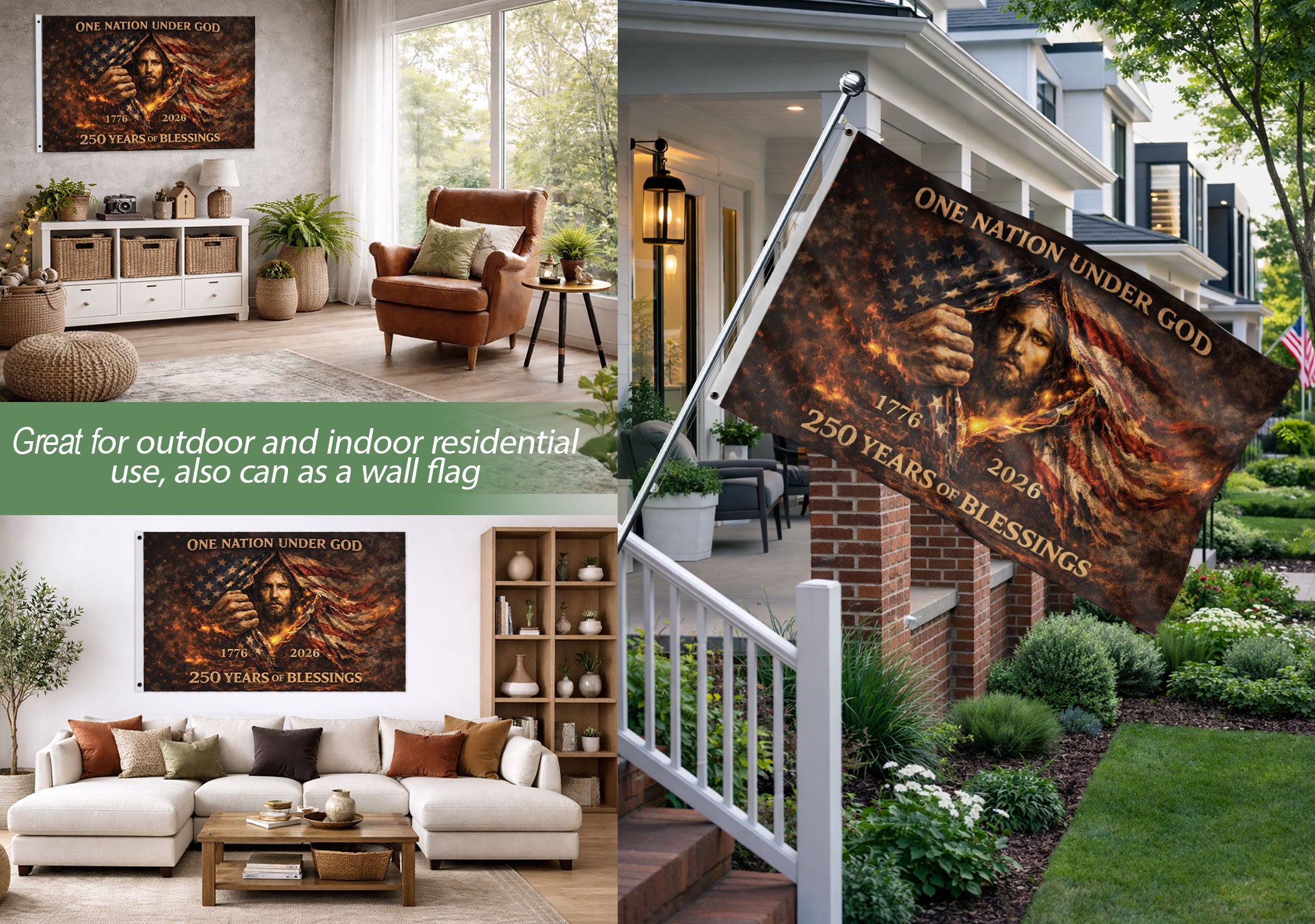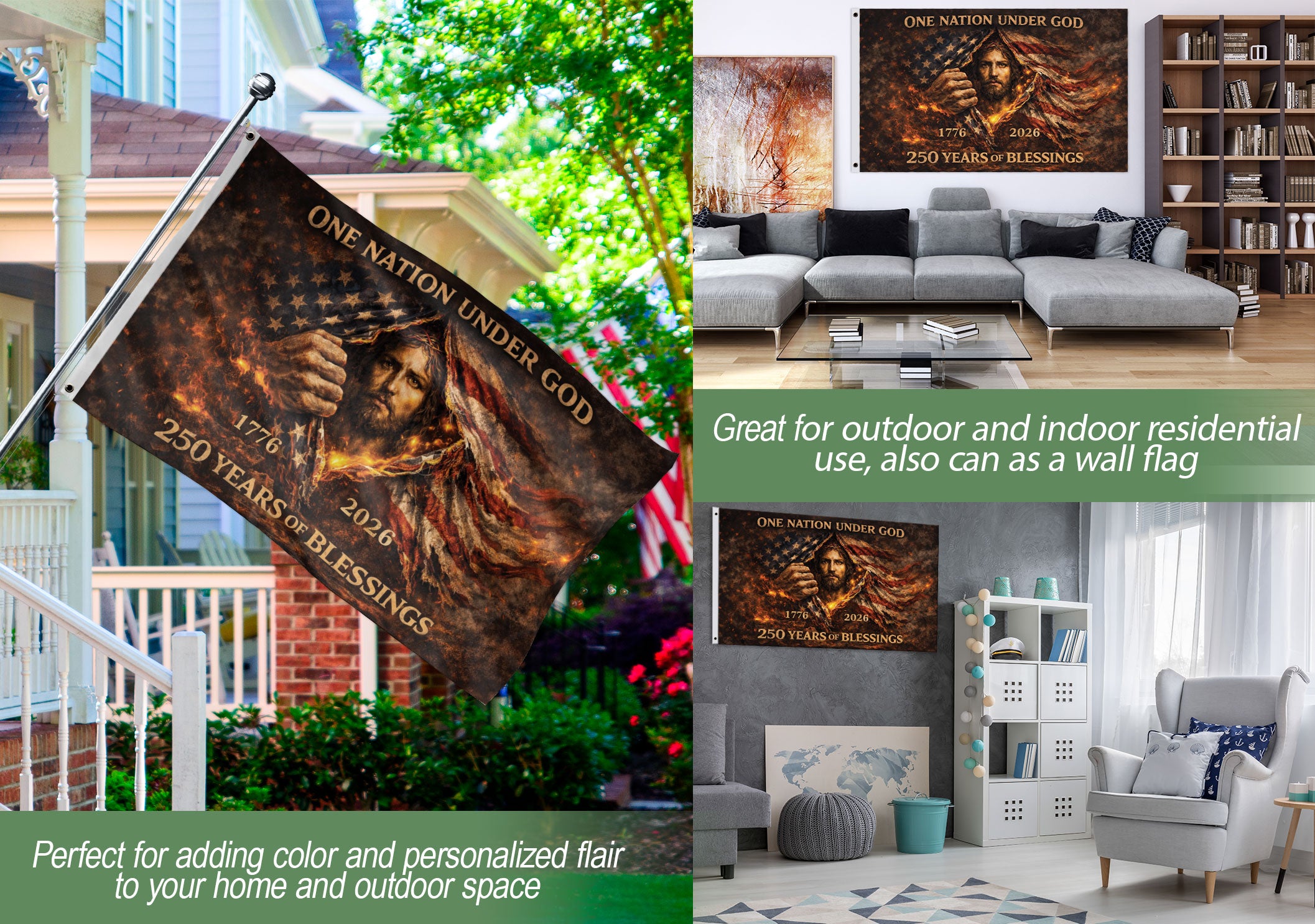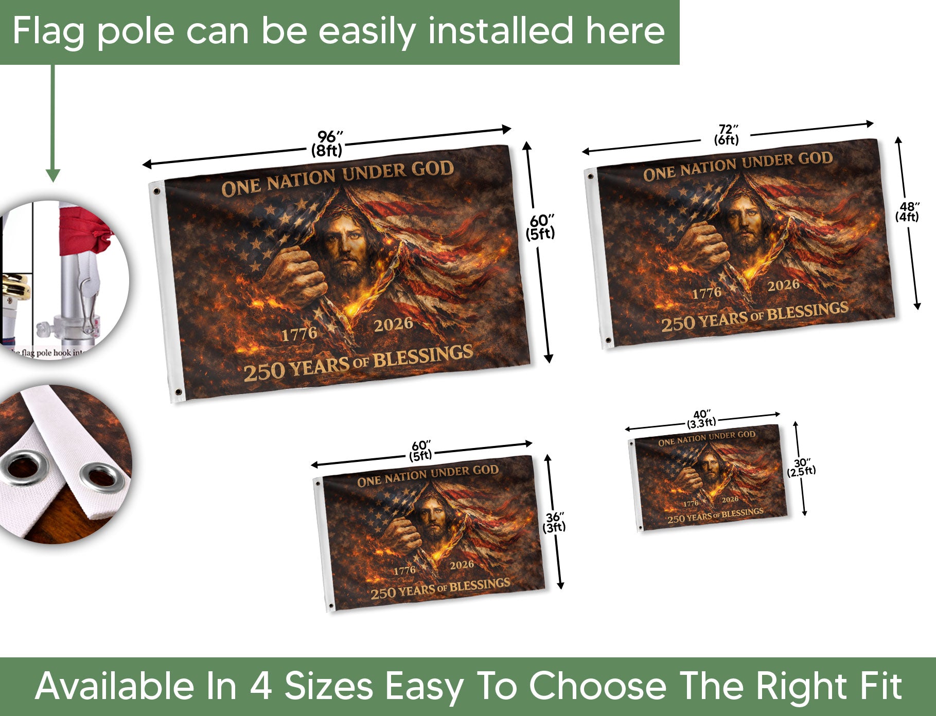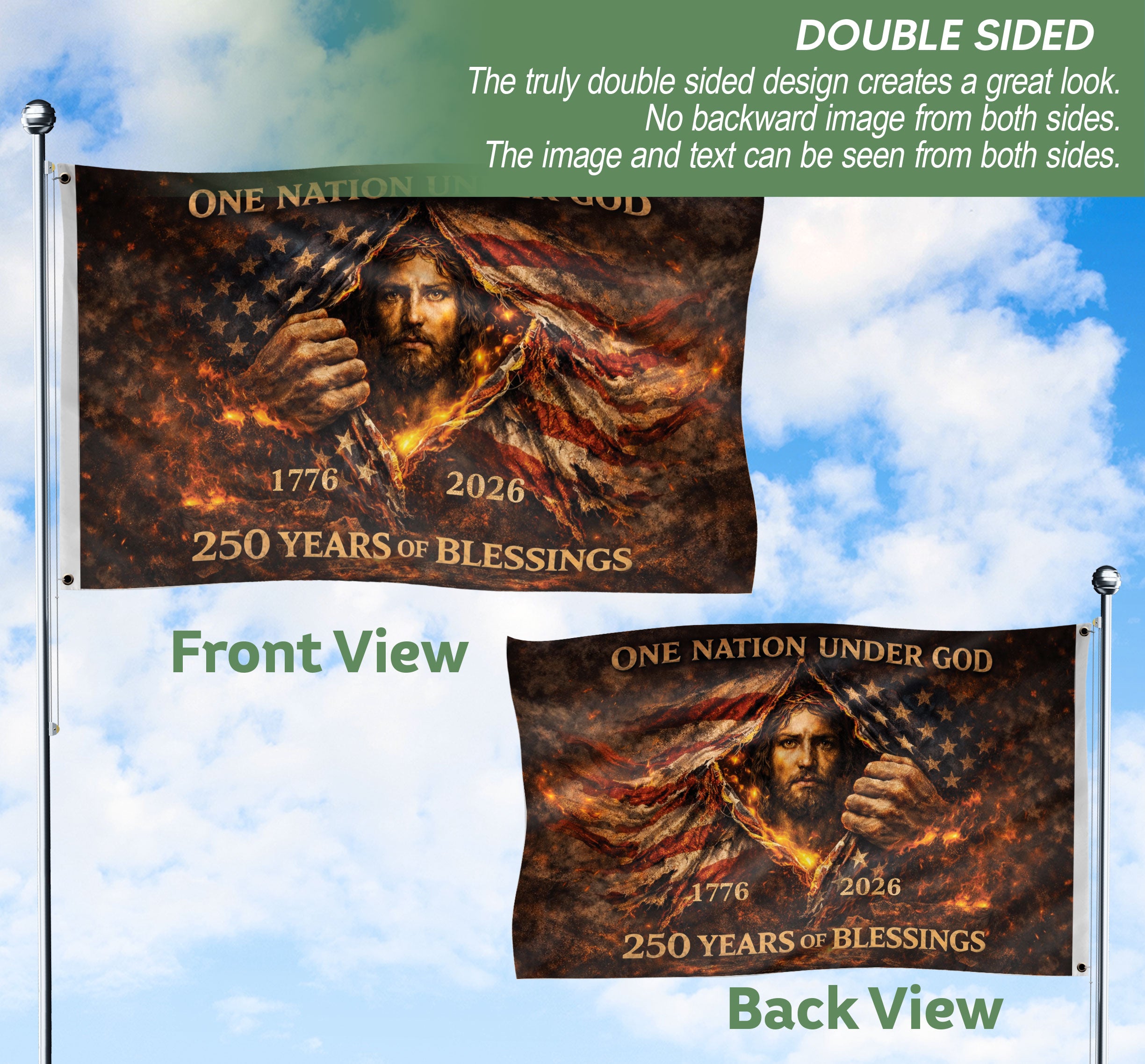 Christian 1776-2026 USA 250th Anniversary Flag Jesus Christ One Nation Under God Patriotic Banner
