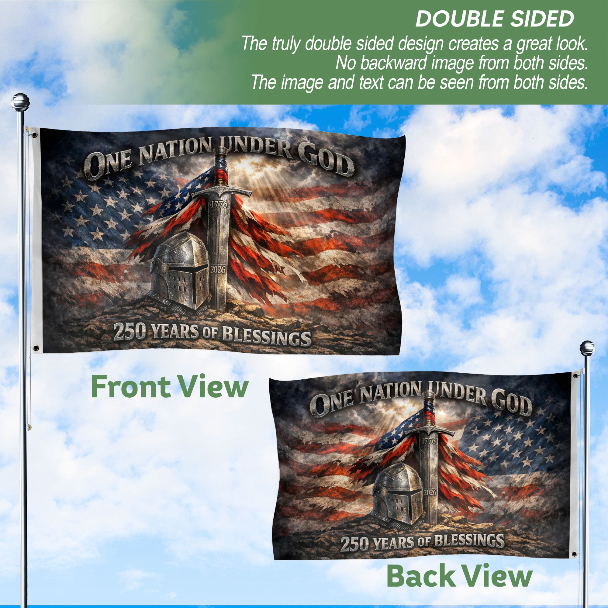 Christian Patriotic One Nation Under God USA 250th Birthday Double Sided Flag