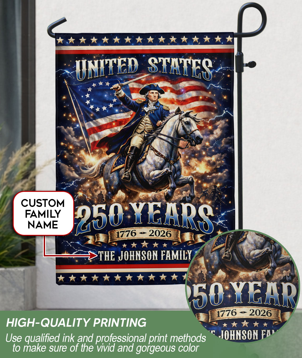 Custom Family Name 250th Anniversary Garden Flag George Washington USA Flag 1776-2026
