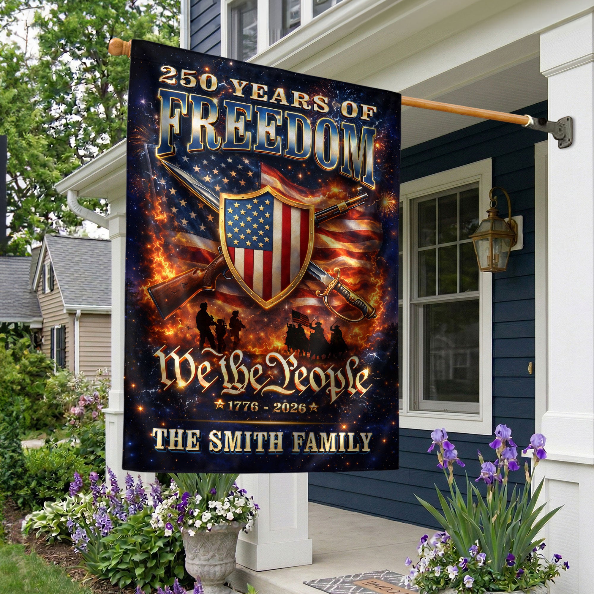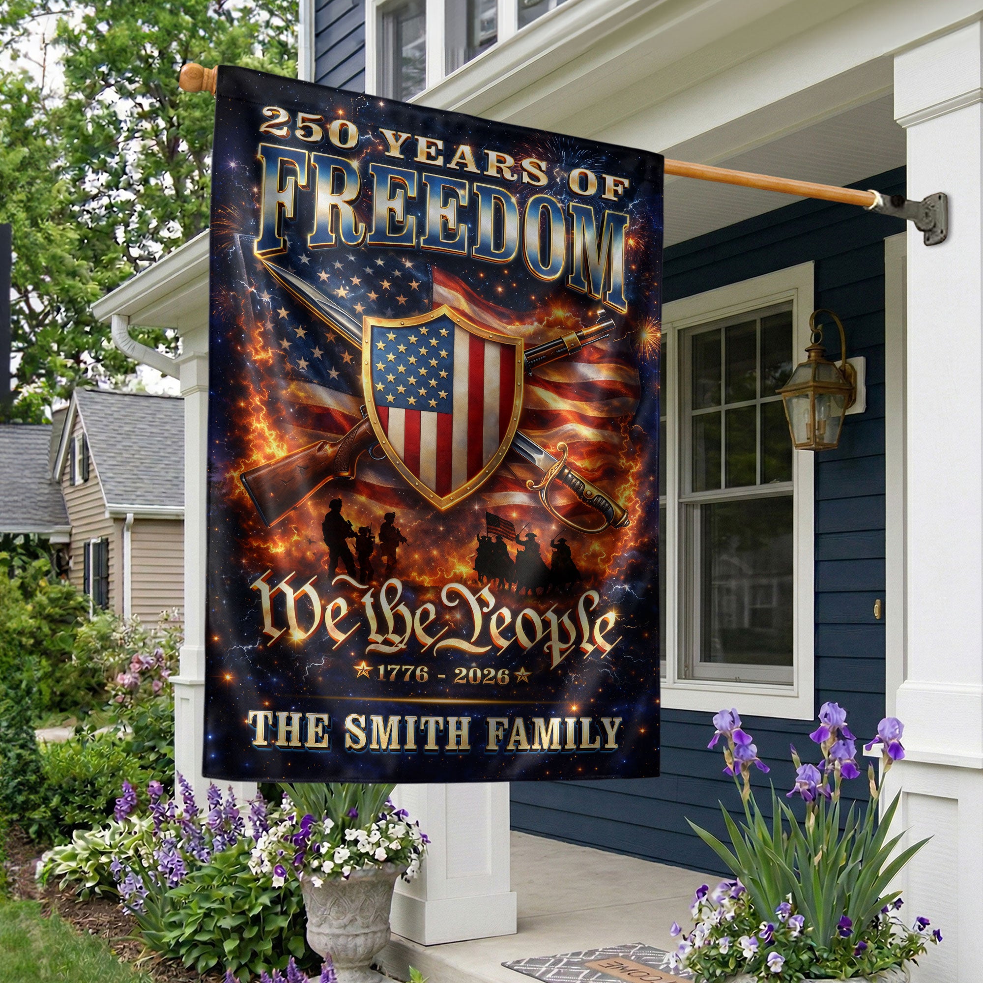 Custom Family Name Garden Flag 250 Years of Freedom 1776-2026 Patriotic American Flag Decor