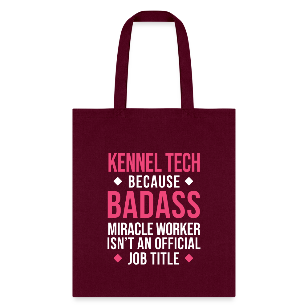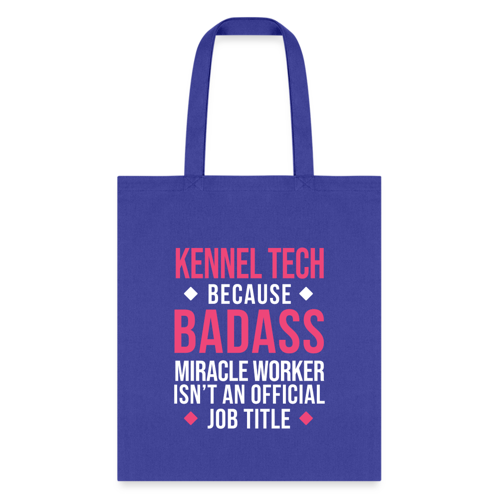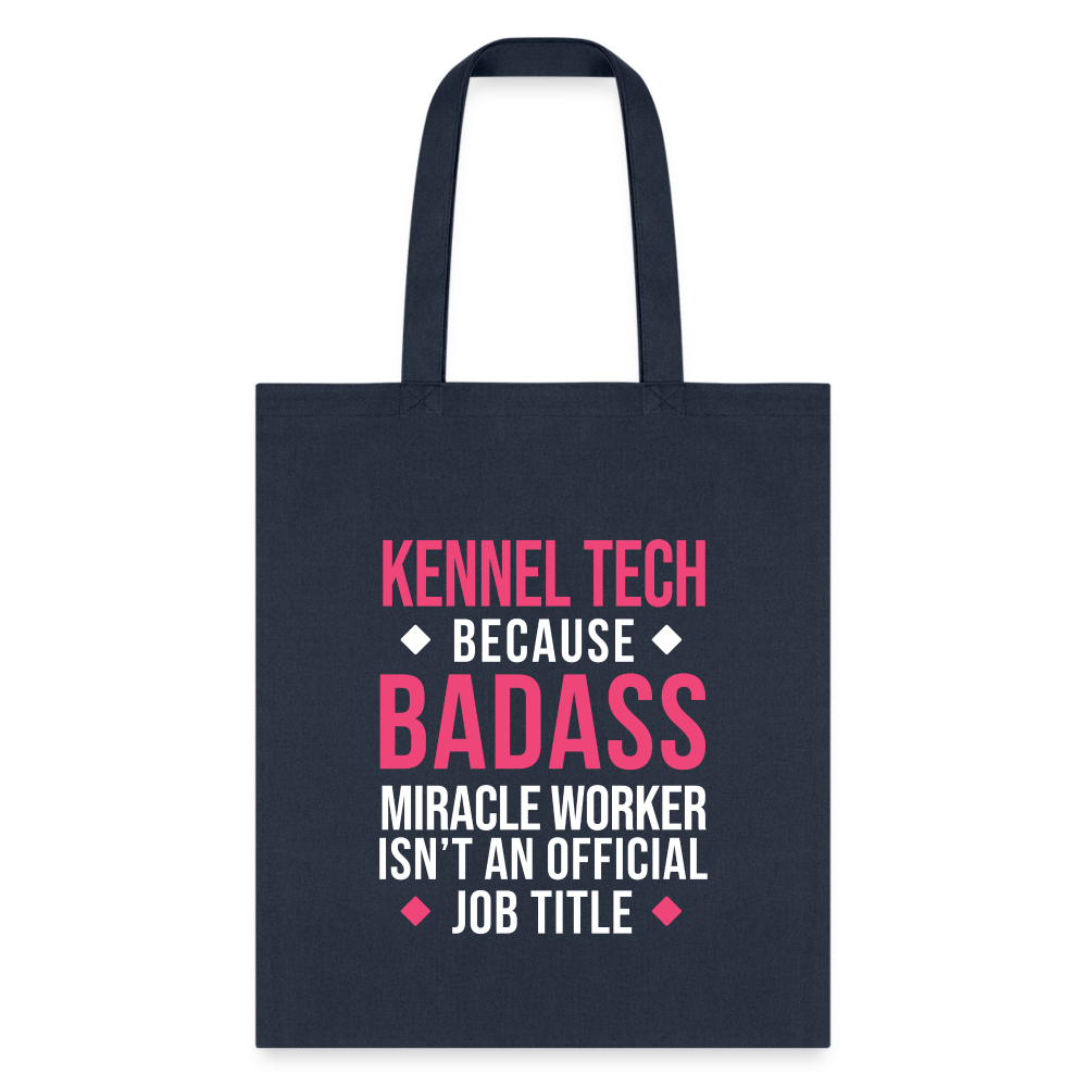 Kennel Tech Tote Bag – Funny Pet Groomer Gift with Badass Miracle Worker Quote