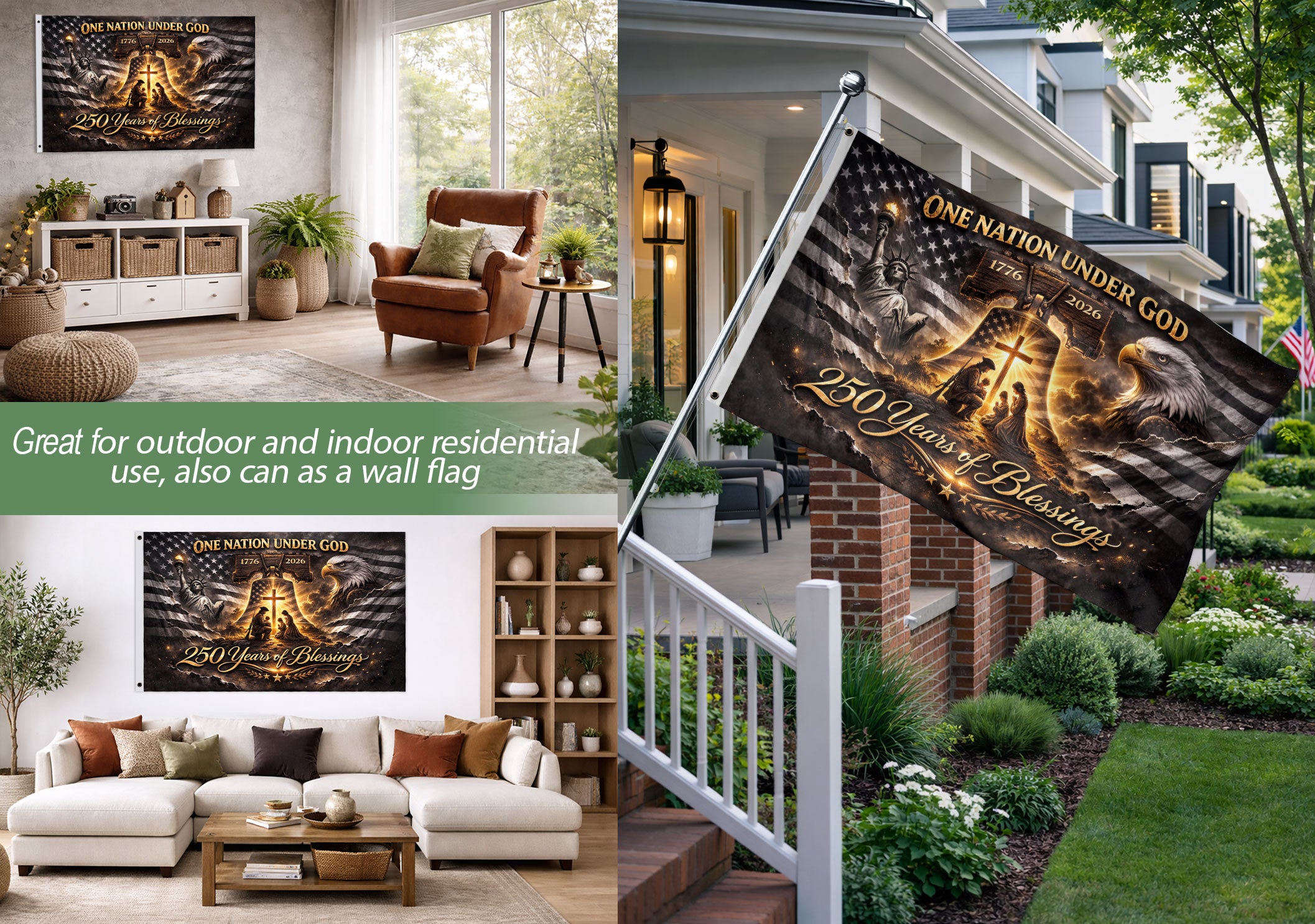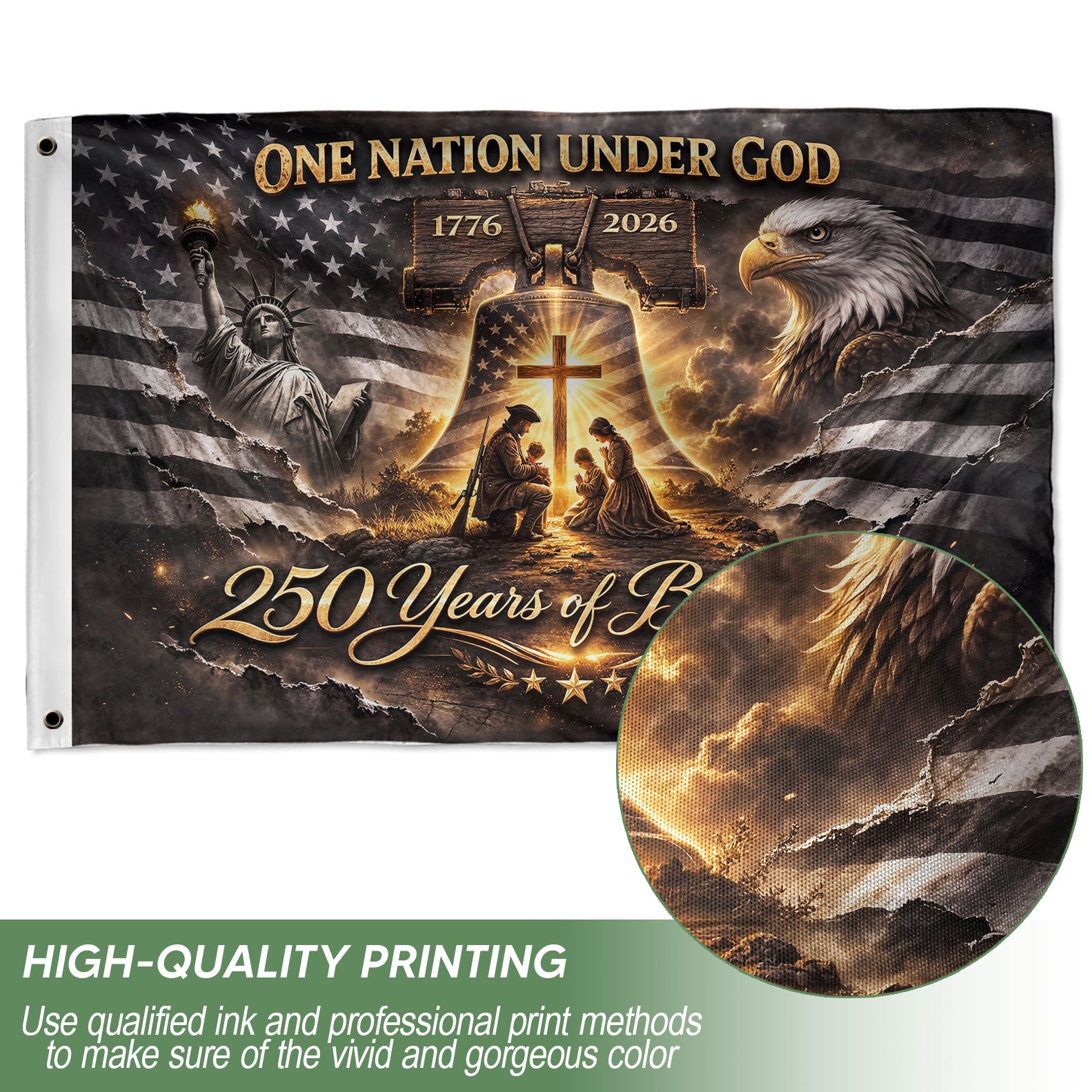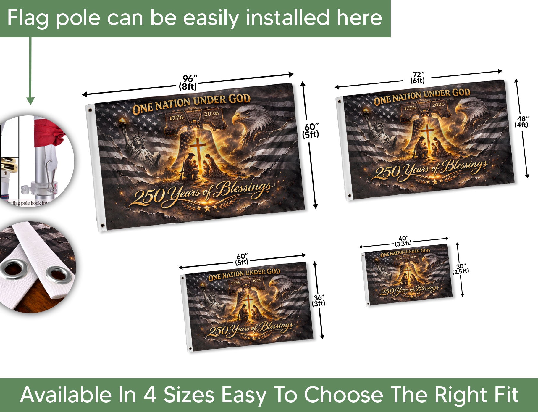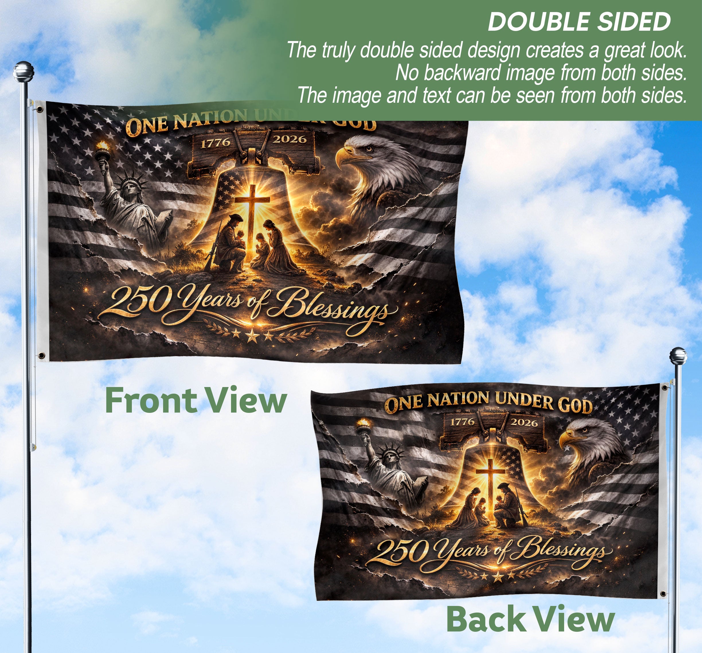 One Nation Under God 250 Years Flag 1776-2026 Eagle Cross Christian Double Sided USA House Flag