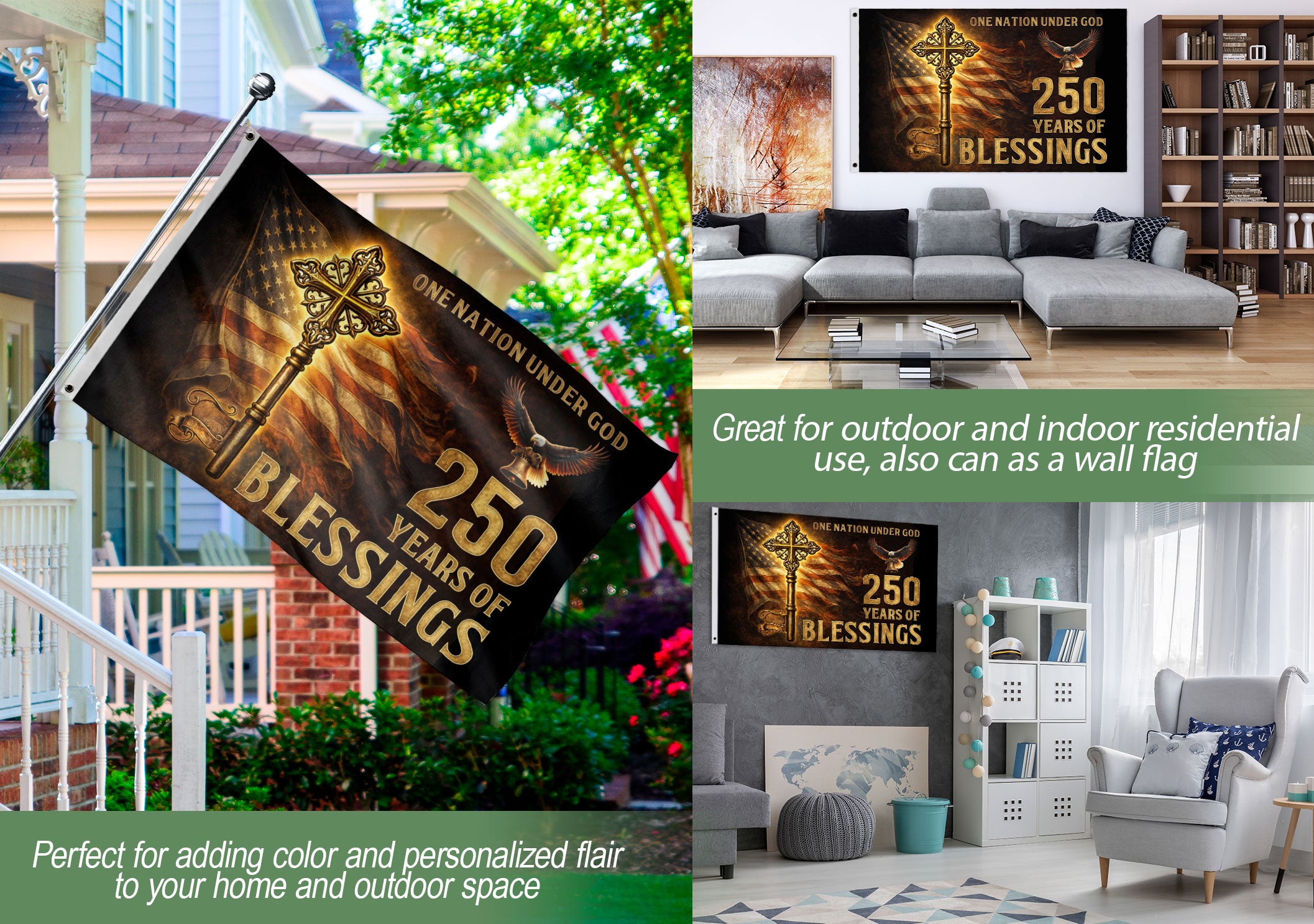 USA 250 Years of Faith Cross Flag – One Nation Under God Christian Patriotic Outdoor Flag 1776-2026