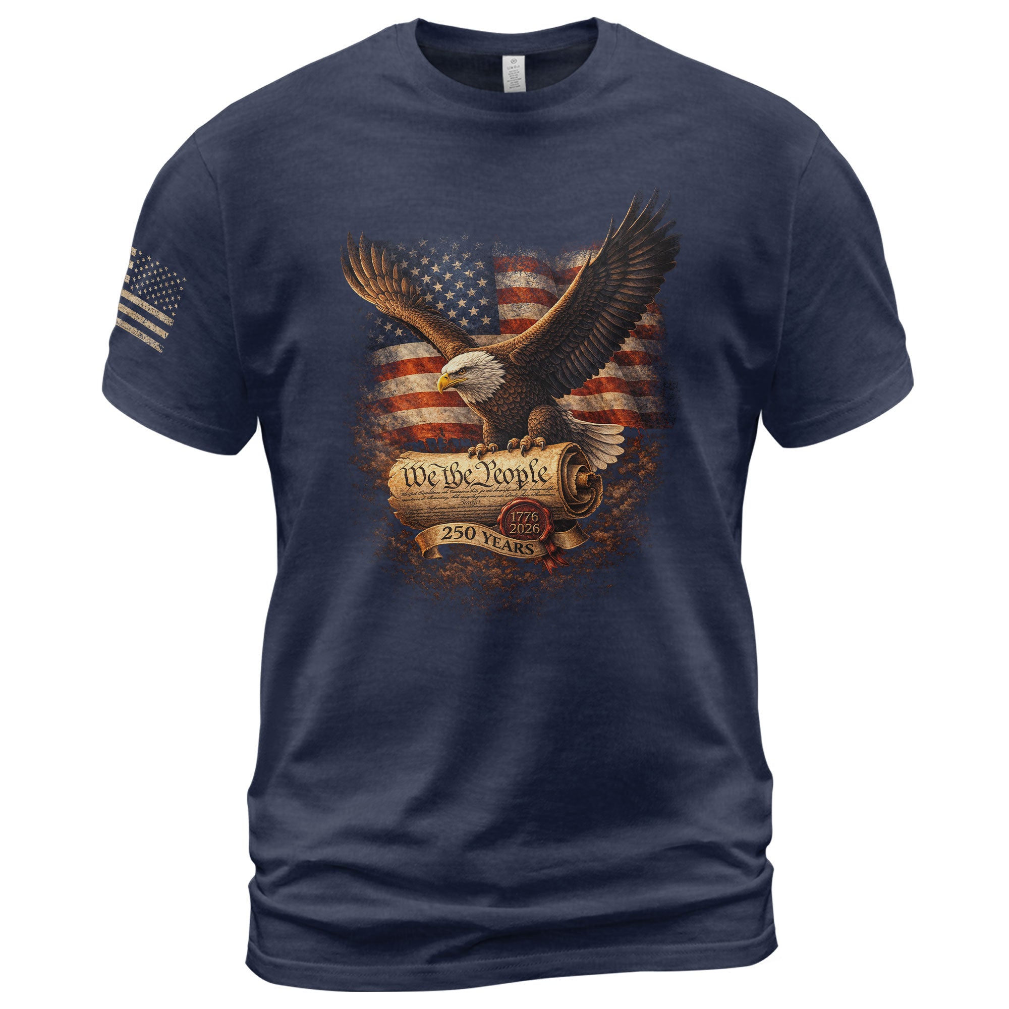 Celebrate America’s 250th anniversary from 1776 to 2026 with this patriotic We The People eagle t-shirt. Featuring a bold eagle design inspired by the Declaration of Independence, this tee honors the spirit of freedom, unity, and national pride that defines the United States. Crafted from soft, breathable cotton for all-day comfort, it’s perfect for Fourth of July celebrations, veterans’ events, historical commemorations, or everyday wear by patriots of all ages. The durable print ensures the vibrant graphics withstand washes while capturing the essence of American heritage. Wear it to barbecues, parades, or casual outings to show your love for the nation’s past, present, and future.