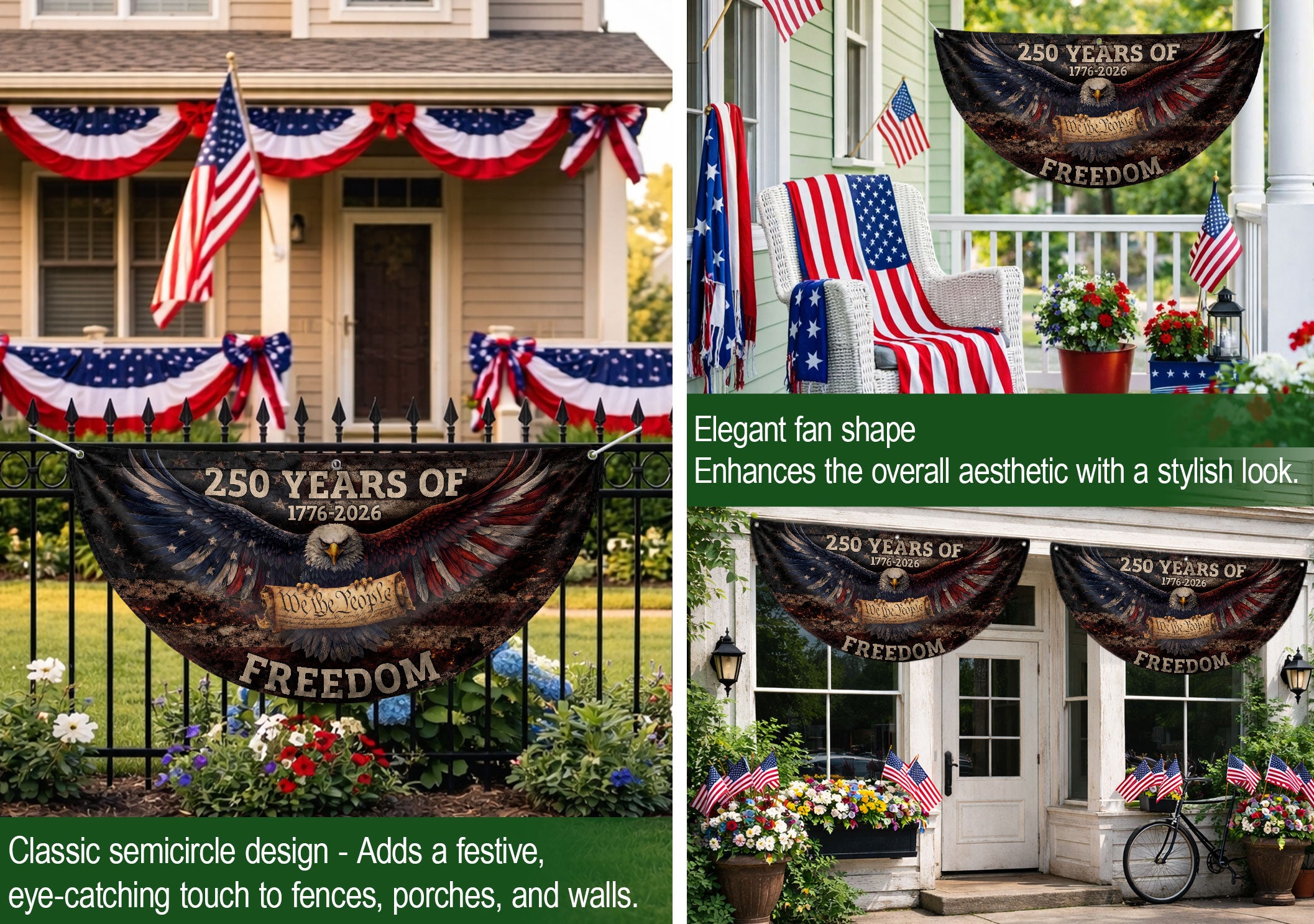 USA 250th Anniversary Fence Flag 1776-2026 American Eagle Patriotic Outdoor Banner