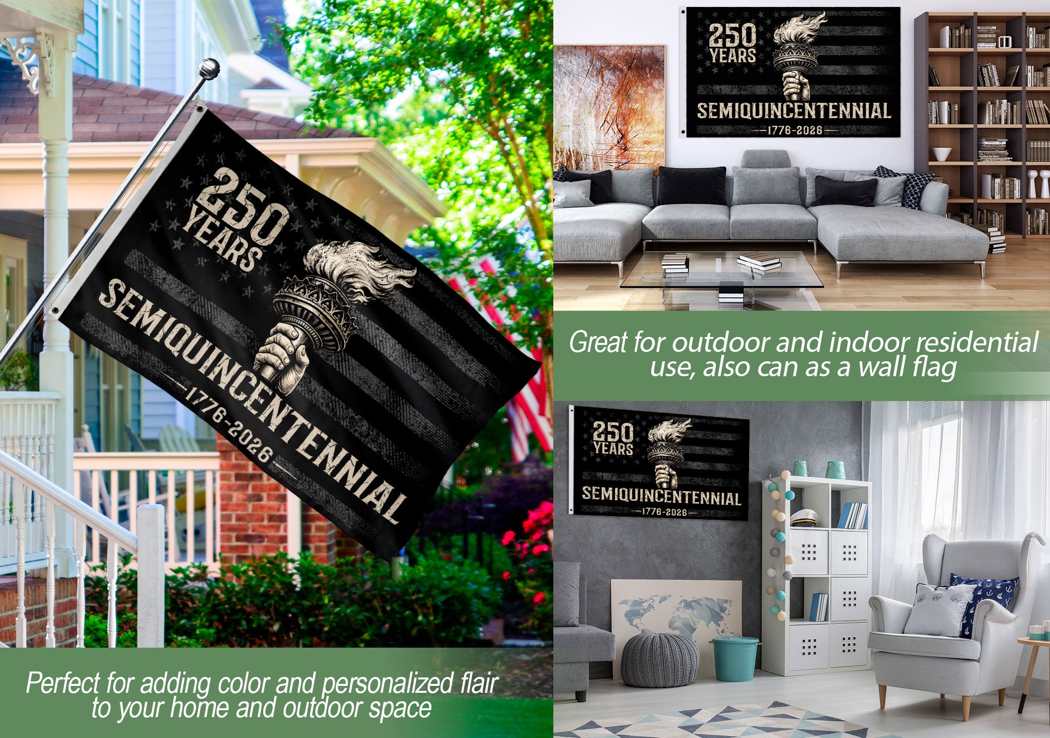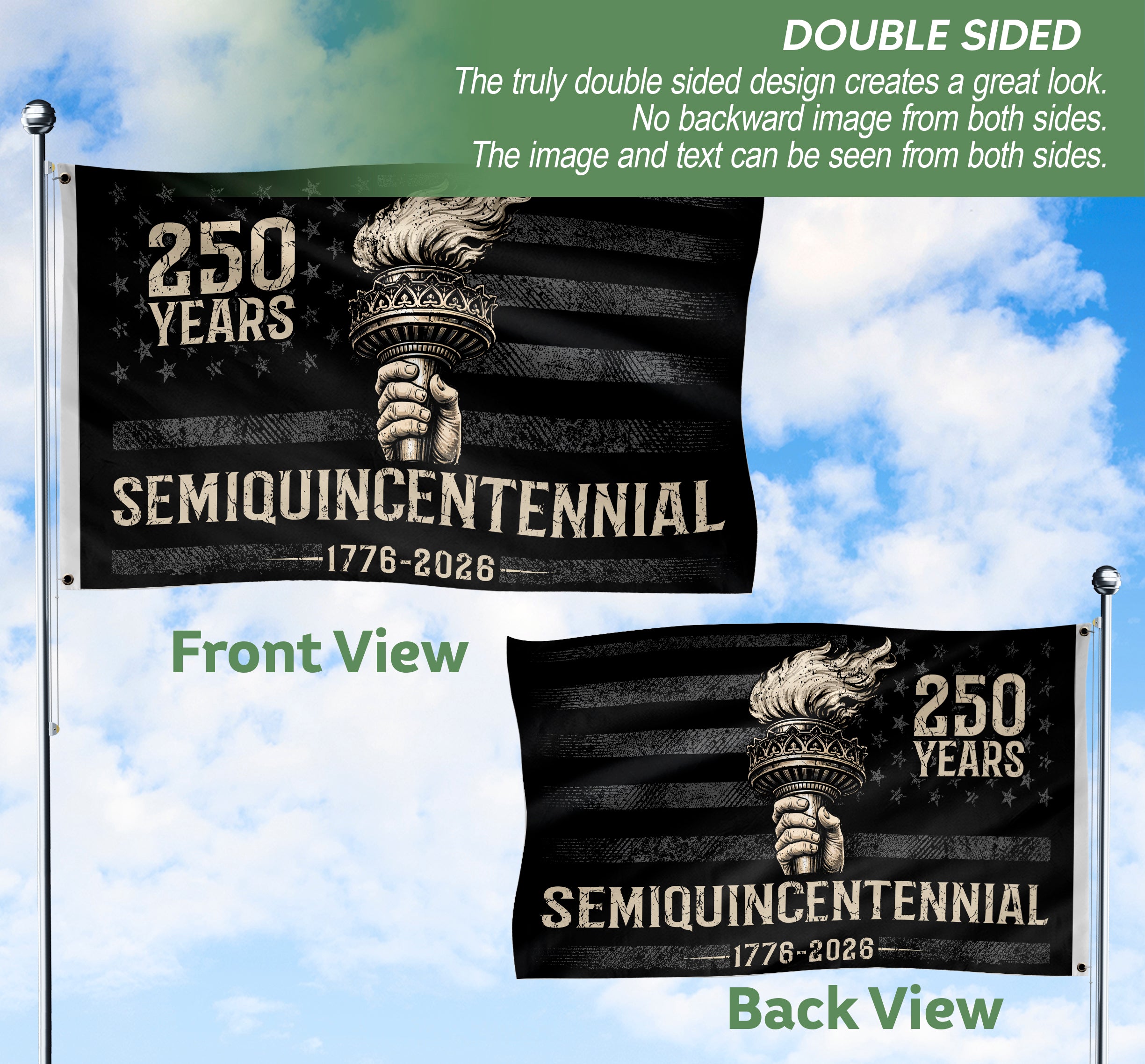 Celebrate America’s 250th anniversary with this durable USA house flag featuring the iconic Liberty Torch patriotic design. Commemorating the journey from 1776 to 2026, this flag honors 250 years of independence, freedom, and democracy. The Liberty Torch symbolizes the enduring light of liberty guiding the nation through history. Perfect for displaying on your home, garden, or porch to showcase national pride during Independence Day, historical events, or daily patriotism. Made from high-quality, weather-resistant polyester fabric that withstands outdoor elements while keeping vibrant colors and sharp details intact. Double-sided printing ensures the design is visible from both sides. Features a standard pole sleeve for easy hanging. Ideal for history buffs, veterans, and proud Americans. Standard house flag size fits most flagpoles for versatile outdoor use.
