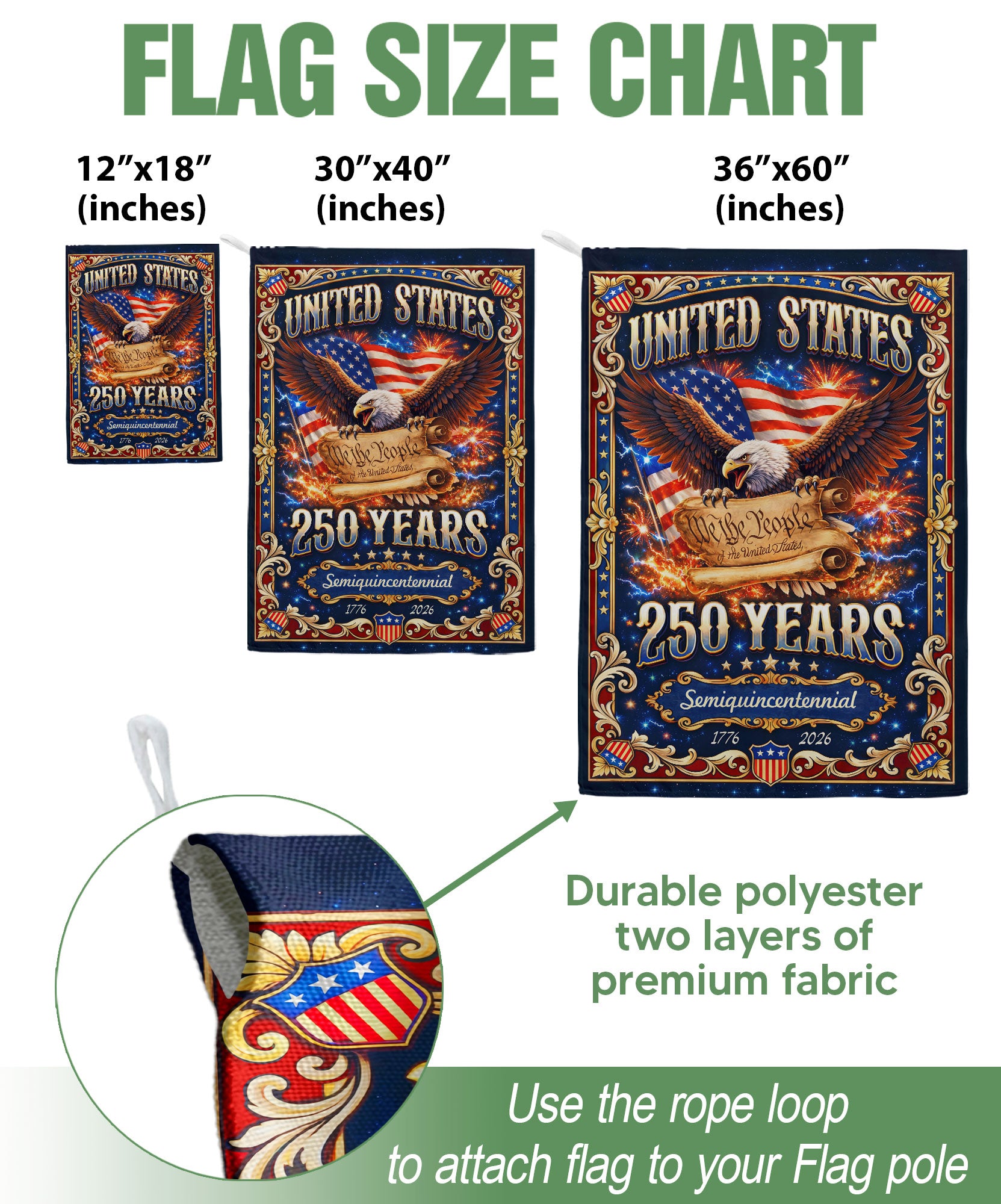 USA 250th Anniversary House Flag 1776-2026 We The People Constitution Double Sided Patriotic Yard Flag