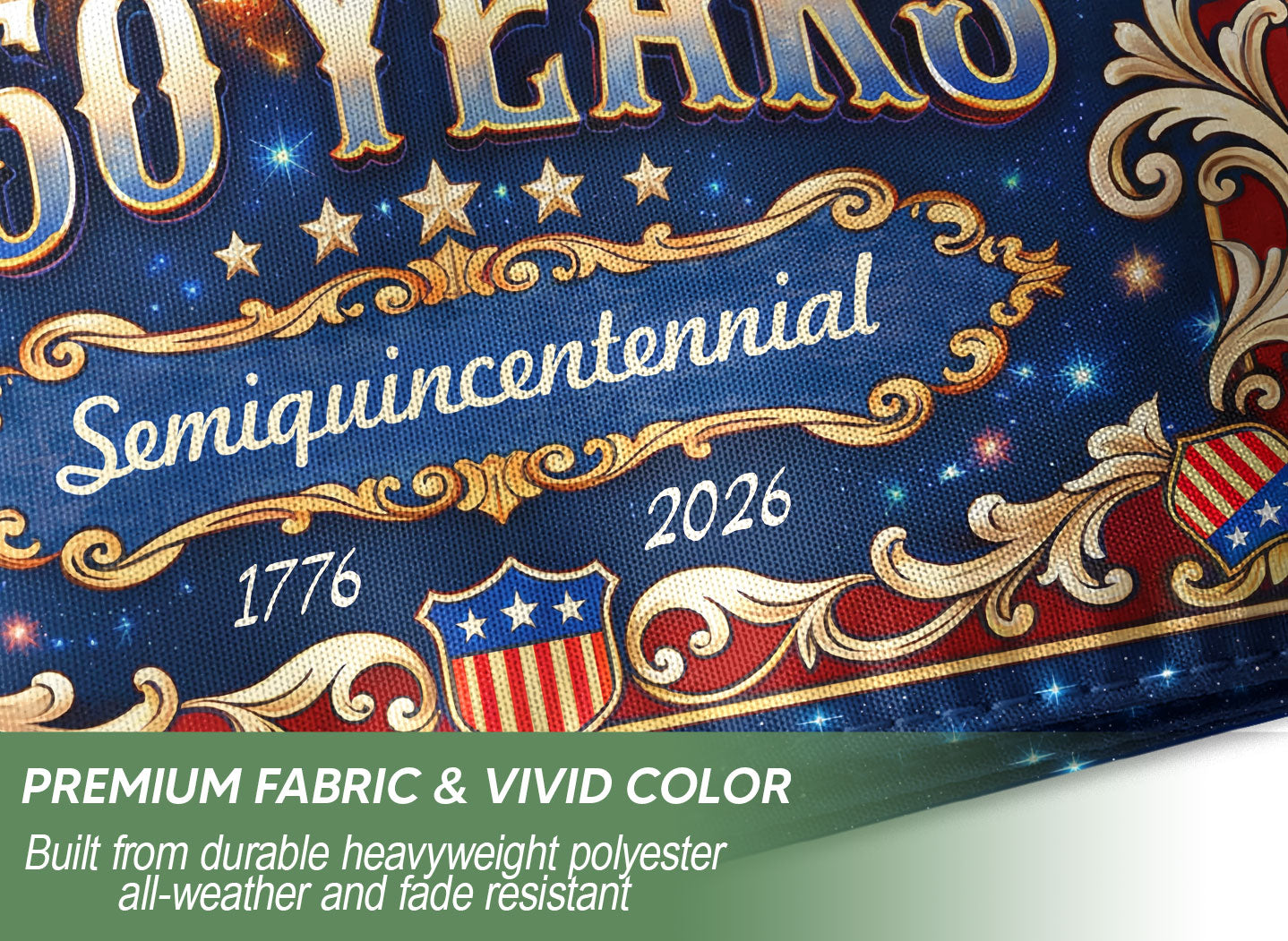 Celebrate America’s 250th anniversary from 1776 to 2026 with this double-sided house flag featuring ‘We The People’ and Constitution-inspired imagery. Crafted for durability, this patriotic yard flag proudly displays the principles that built a nation, honoring enduring American liberty and freedom. Perfect for porches, gardens, or yards, it withstands outdoor conditions while showcasing bold graphics visible from both sides. Ideal for patriots, history enthusiasts, and Fourth of July displays.