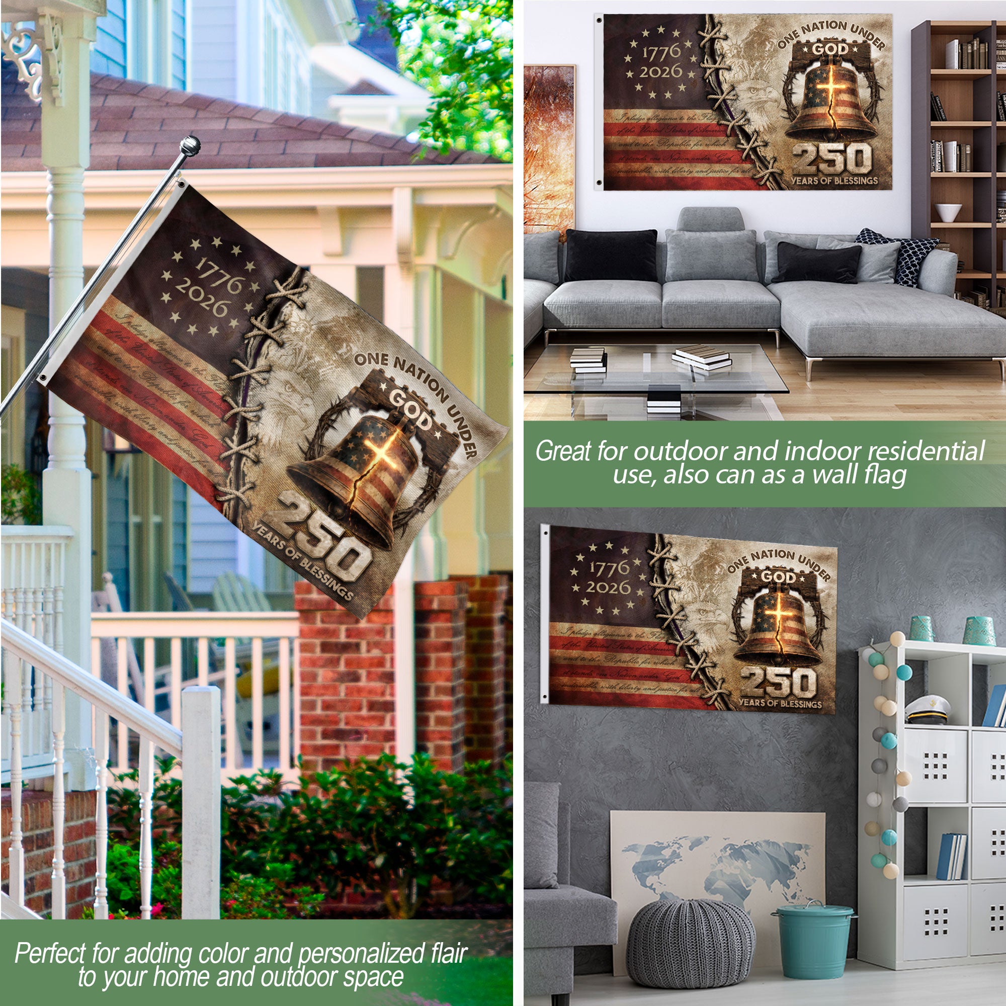 250 Years of Blessings American Flag – Christian Patriotic One Nation Under God Double Sided Design