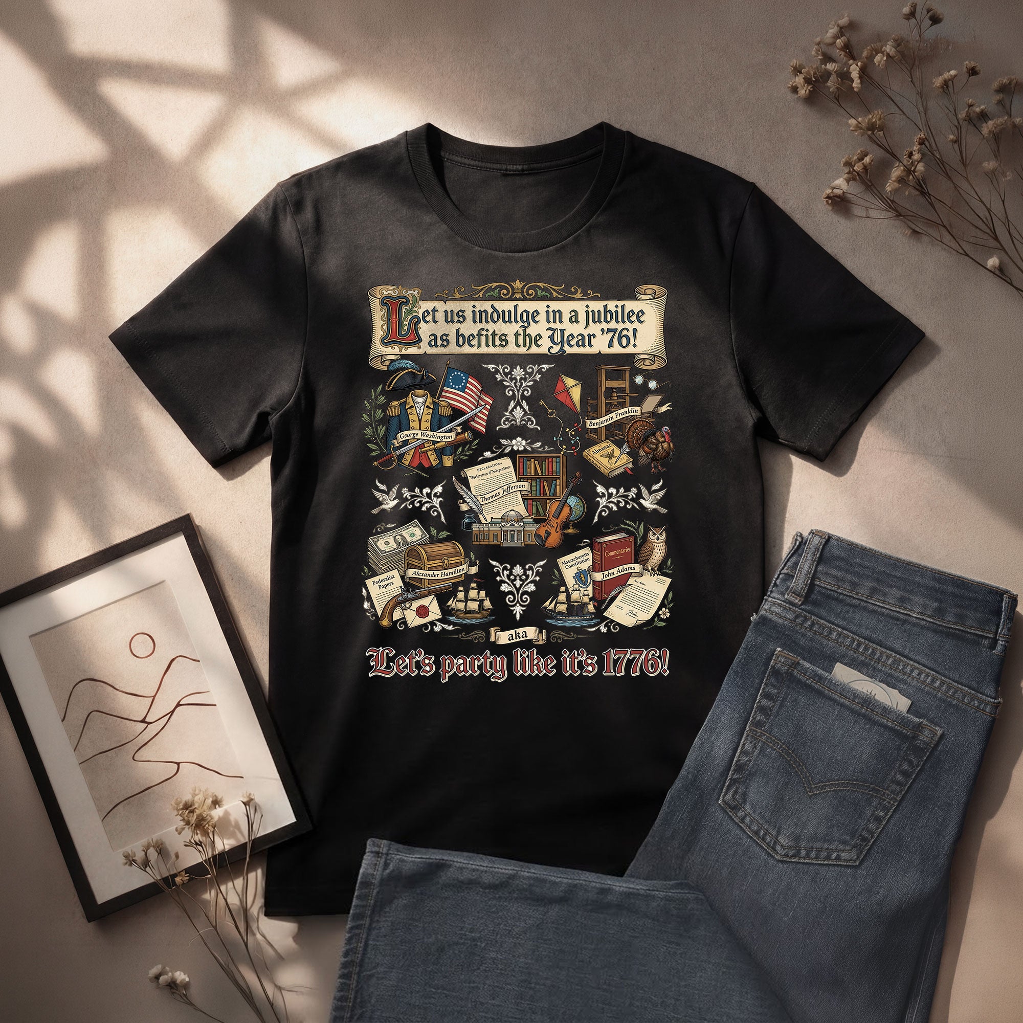 Celebrate American history with this elegant vintage 1776 patriotic T-shirt featuring a soft aesthetic collage of iconic heritage symbols like the Liberty Bell, eagles, stars, and stripes. Crafted from premium soft cotton for all-day comfort, this unisex tee offers a relaxed fit perfect for casual everyday wear, July 4th celebrations, Independence Day barbecues, patriotic events, or as a thoughtful USA-inspired gift for history buffs and veterans. The distressed vintage print provides a timeless, faded look that captures the spirit of 1776 and America’s founding. Machine washable and durable for long-lasting wear. Available in multiple sizes for men, women, and youth.