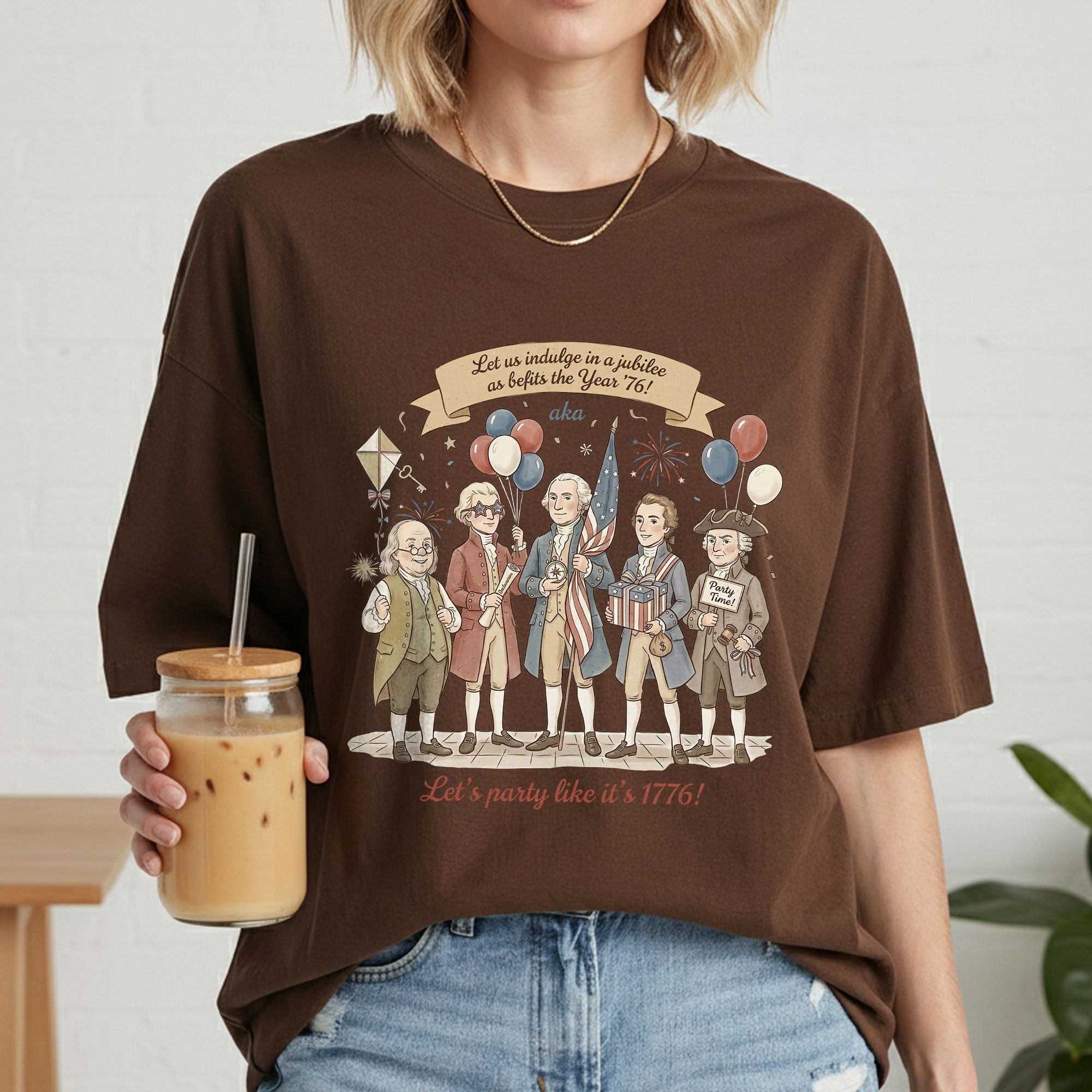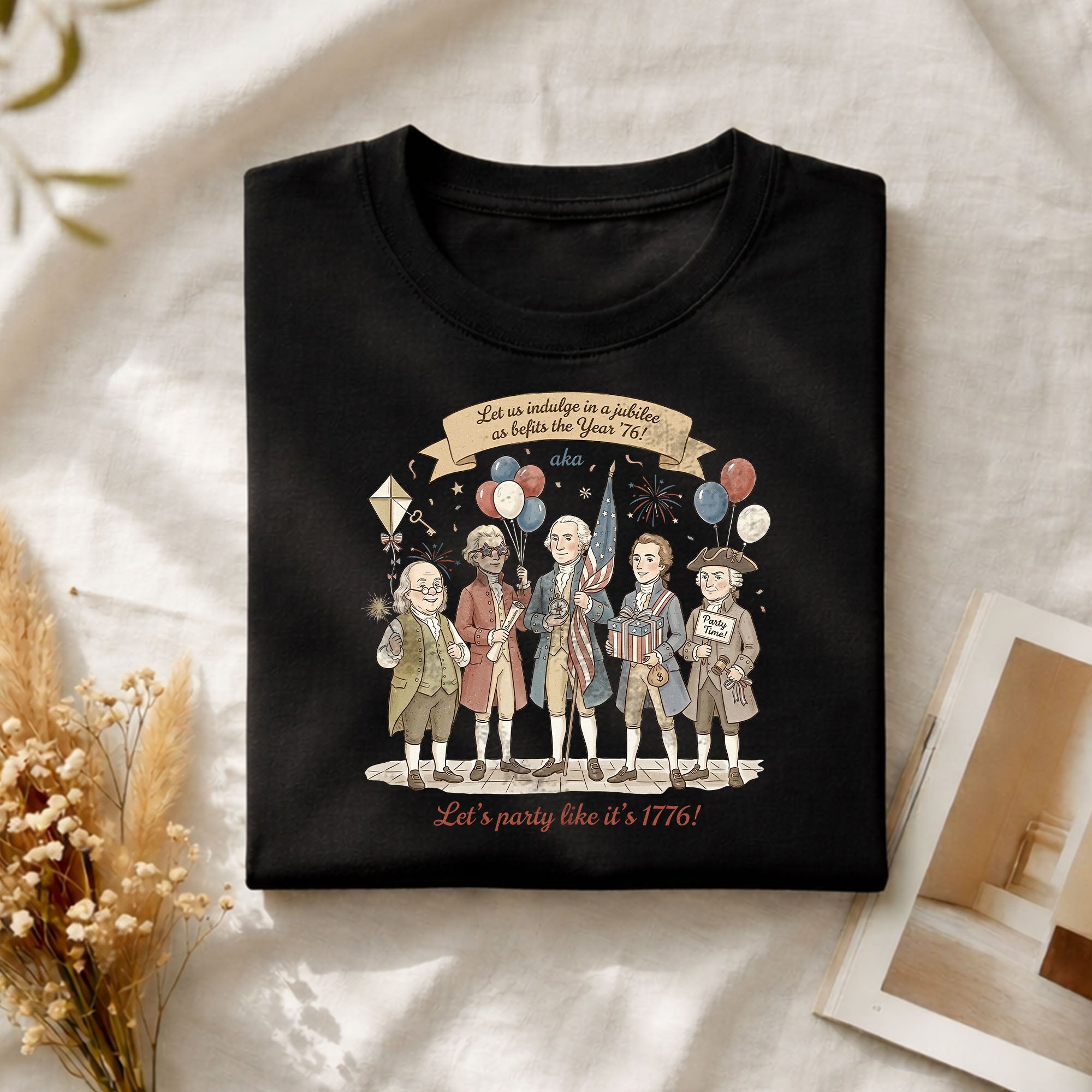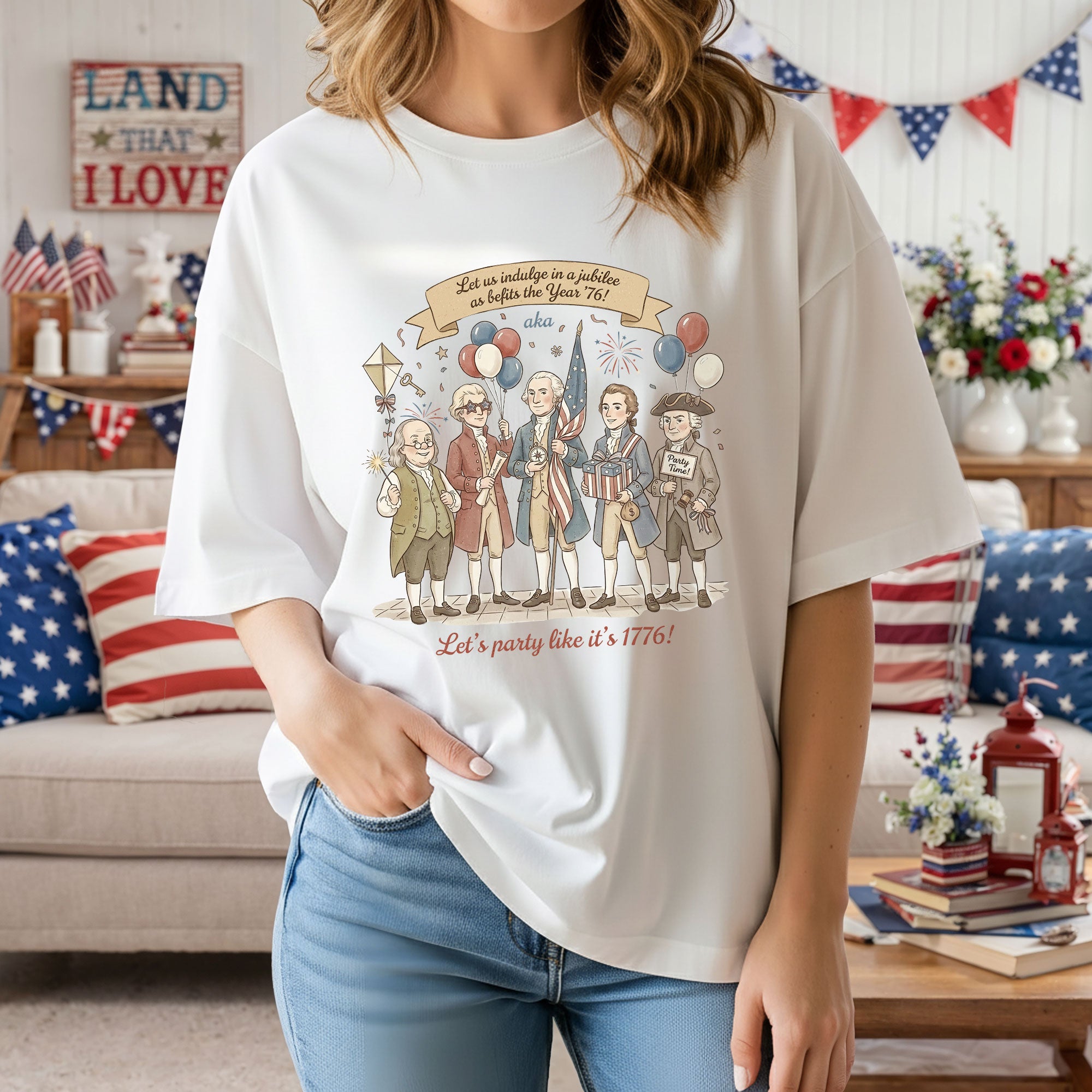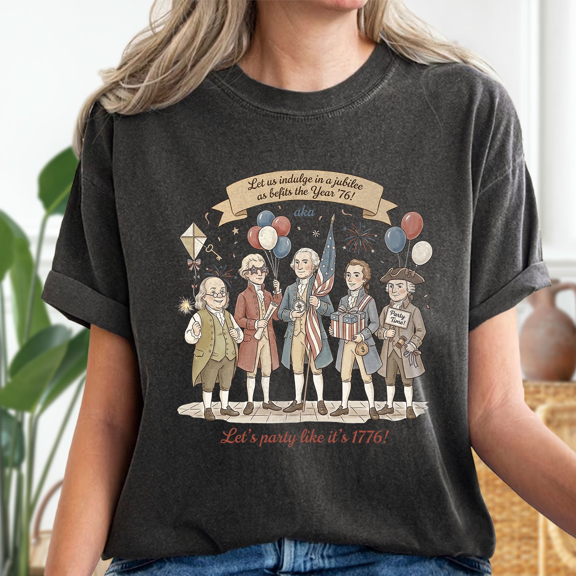 Celebrate American history and patriotism with this vintage-style funny Founding Fathers T-shirt featuring the iconic phrase “Let’s Party Like It’s 1776.” Crafted for comfort and durability, this retro tee showcases a distressed graphic print that captures the revolutionary spirit of 1776. Perfect for Independence Day celebrations, Fourth of July barbecues, historical reenactments, or casual everyday wear to show your USA pride. Ideal gift for history buffs, Constitution enthusiasts, and anyone who loves humorous patriotic apparel. Made from soft, breathable cotton blend fabric for all-day comfort. Available in multiple sizes for men, women, and unisex fit. Embrace the fun side of American independence with this unique graphic tee.