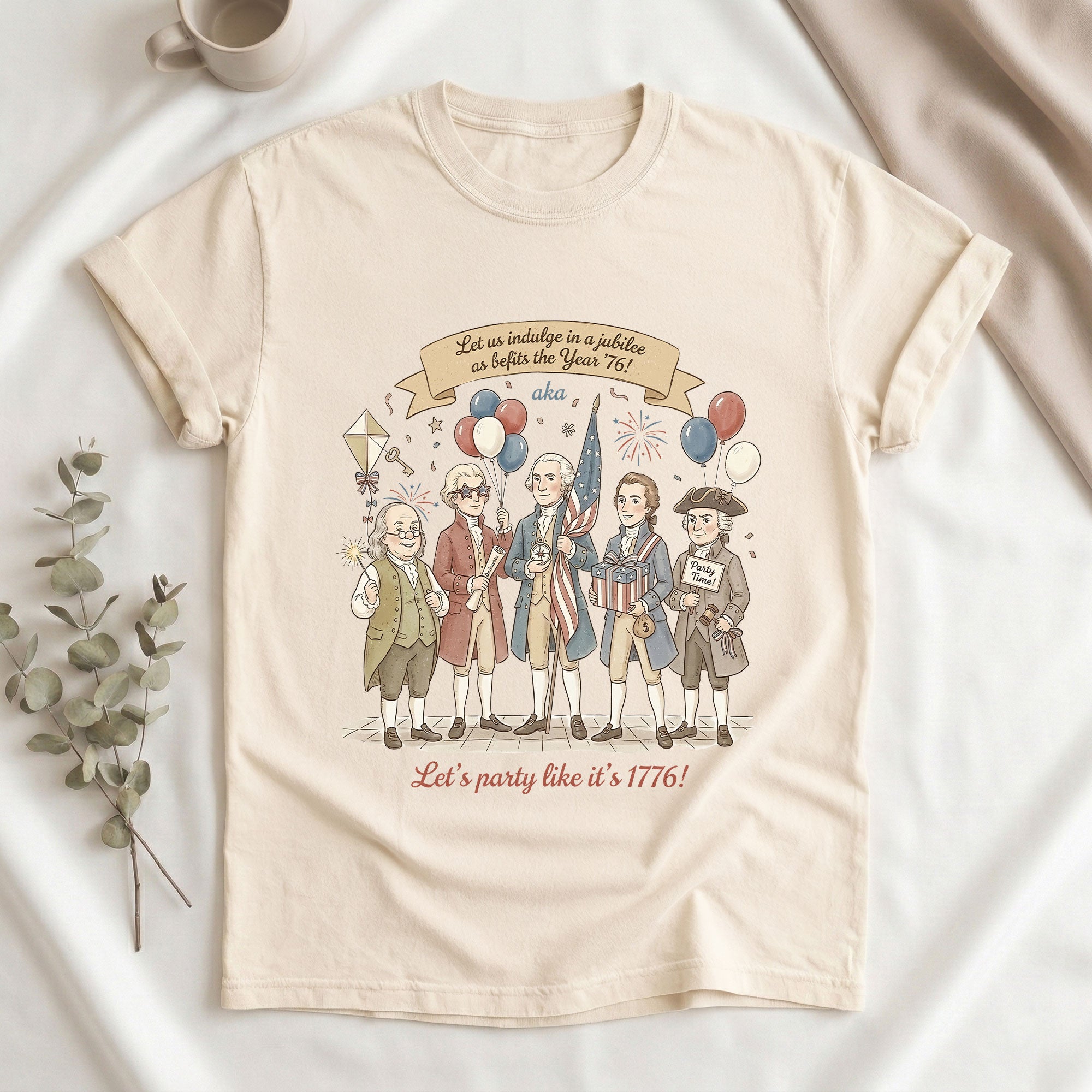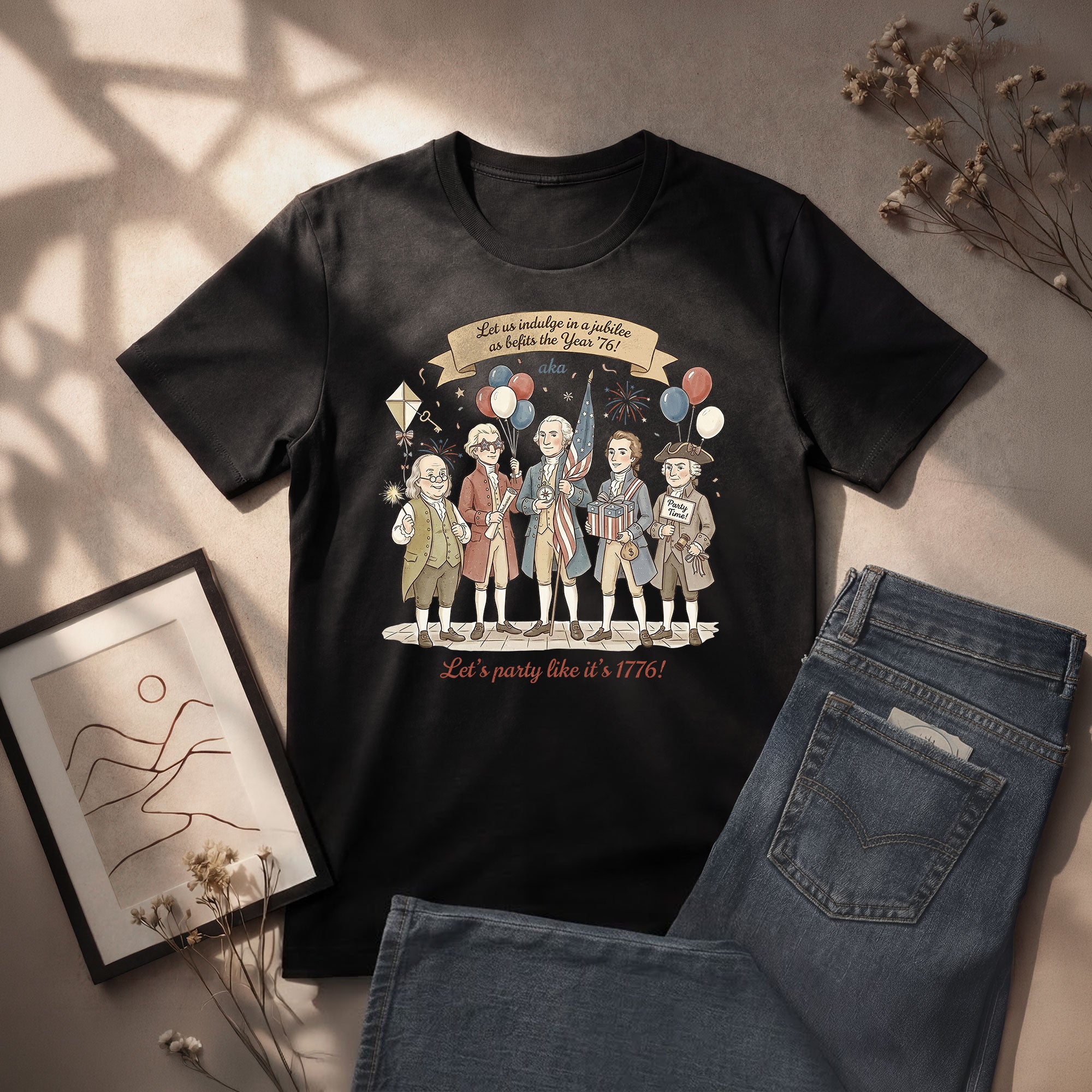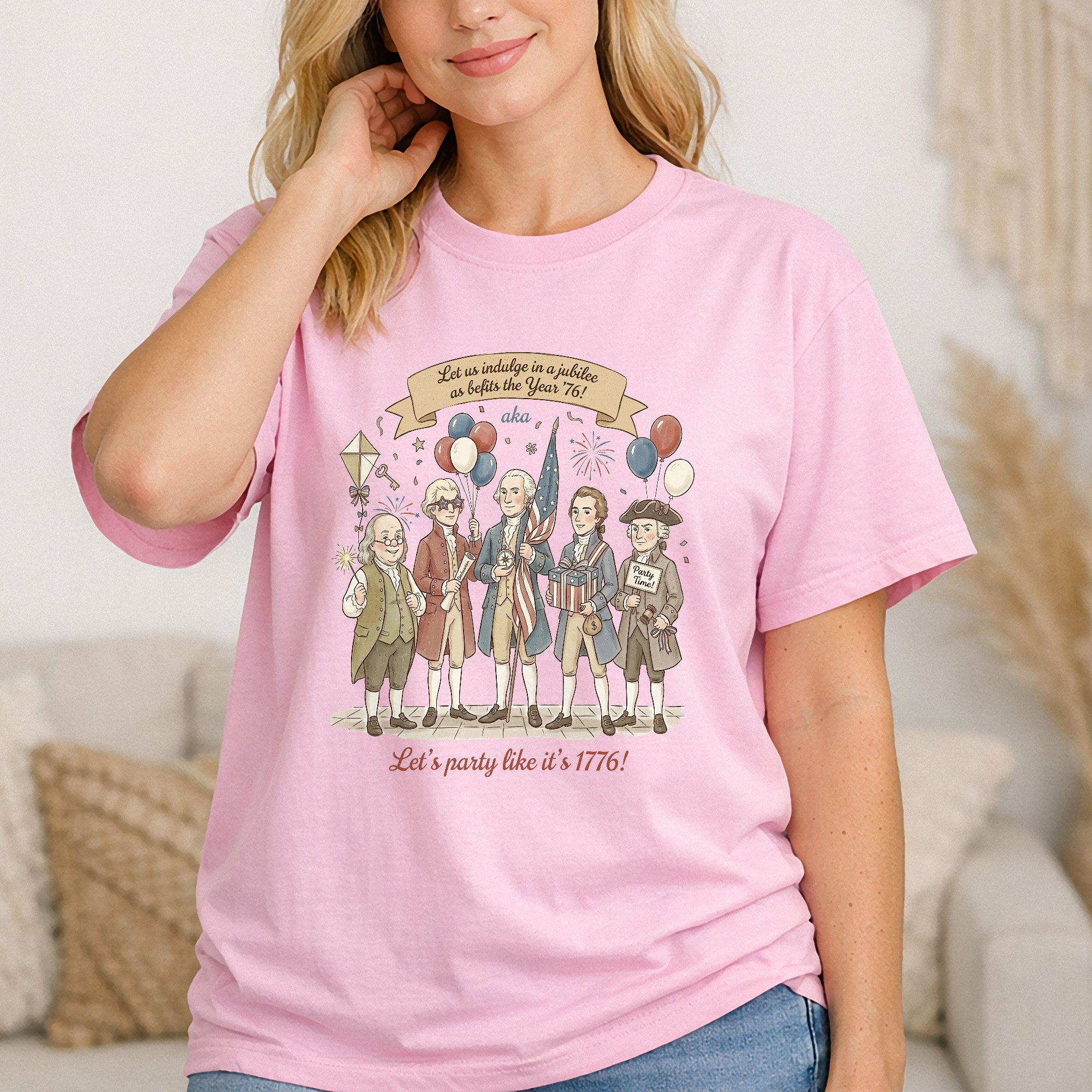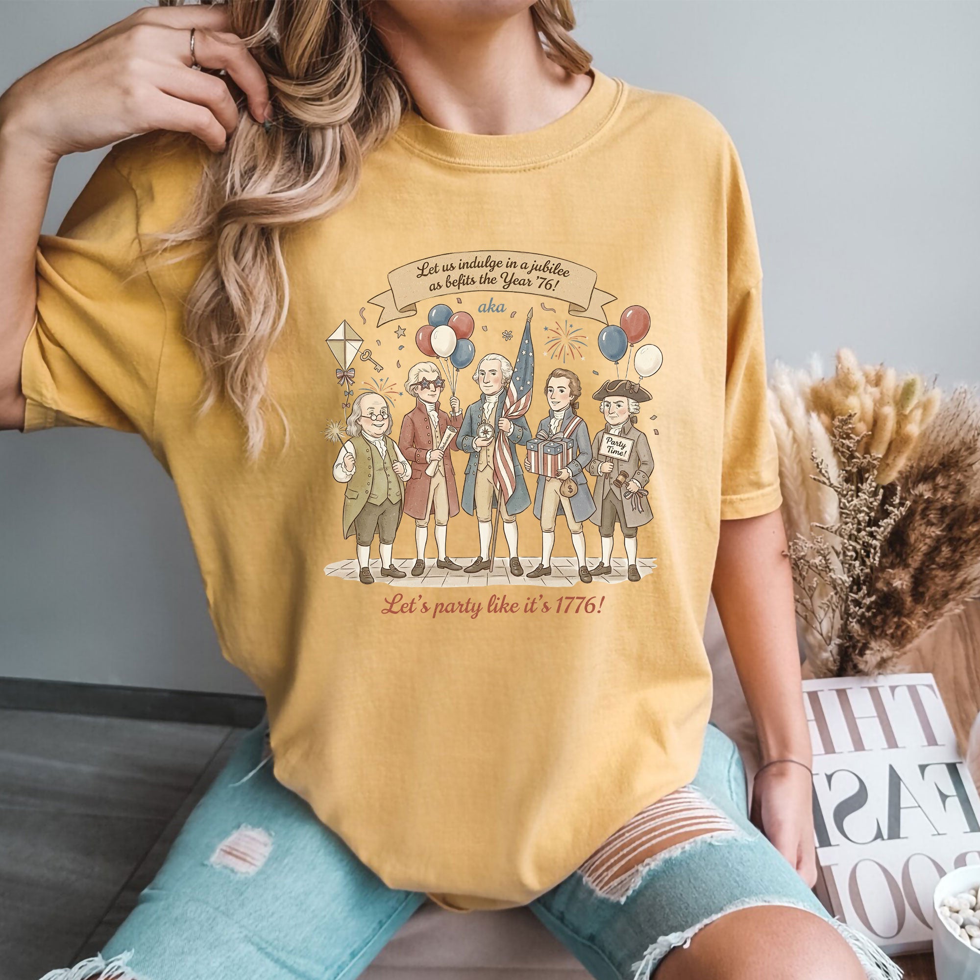 Celebrate American history and patriotism with this vintage-style funny Founding Fathers T-shirt featuring the iconic phrase “Let’s Party Like It’s 1776.” Crafted for comfort and durability, this retro tee showcases a distressed graphic print that captures the revolutionary spirit of 1776. Perfect for Independence Day celebrations, Fourth of July barbecues, historical reenactments, or casual everyday wear to show your USA pride. Ideal gift for history buffs, Constitution enthusiasts, and anyone who loves humorous patriotic apparel. Made from soft, breathable cotton blend fabric for all-day comfort. Available in multiple sizes for men, women, and unisex fit. Embrace the fun side of American independence with this unique graphic tee.