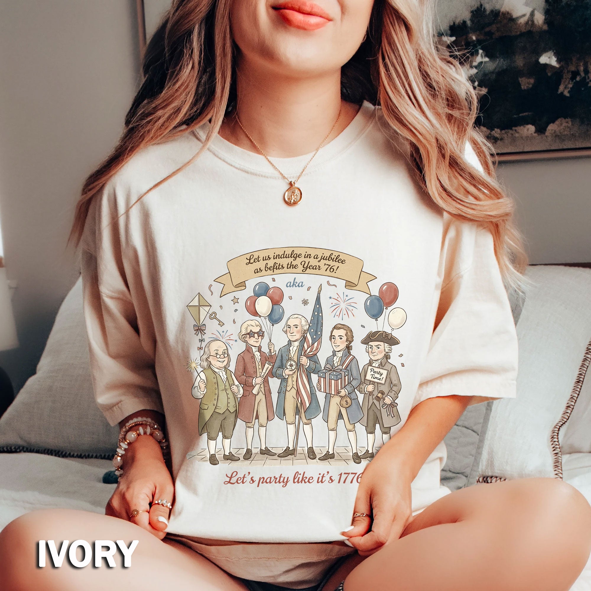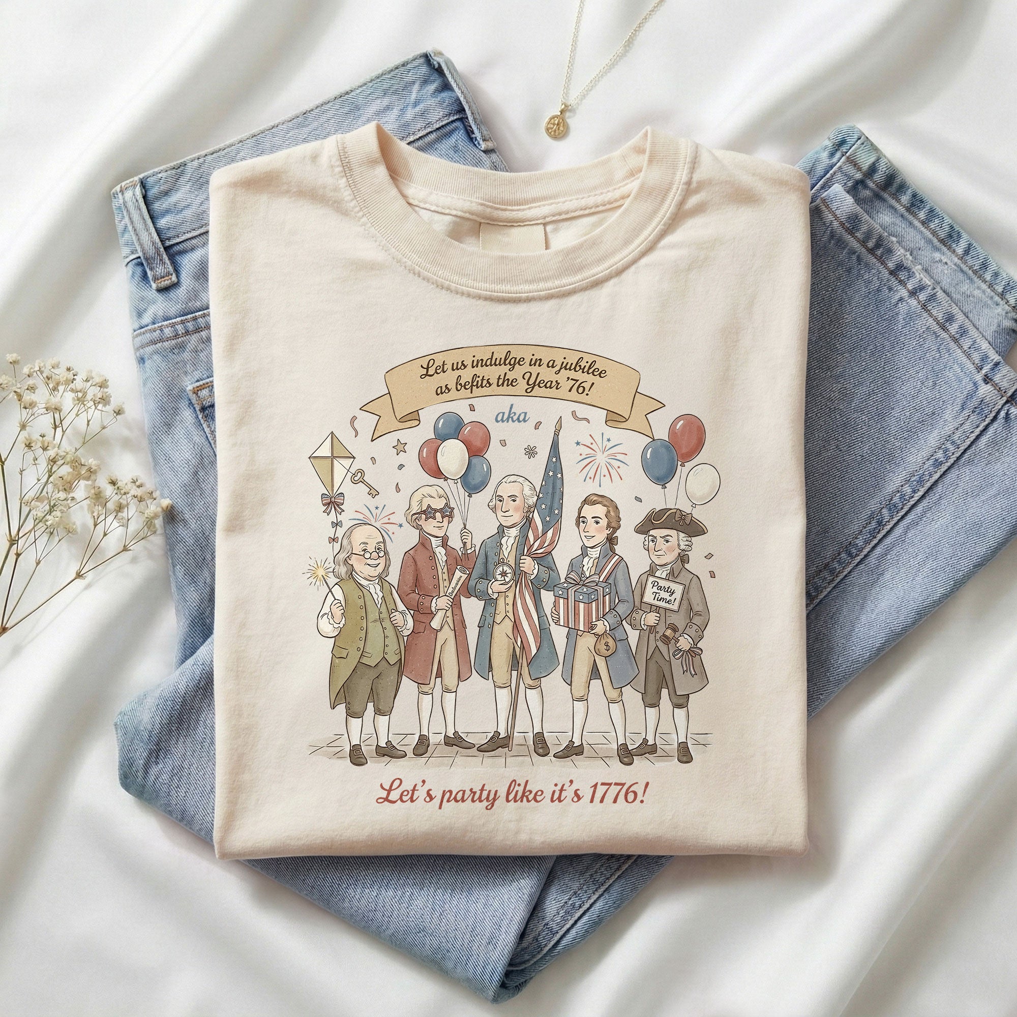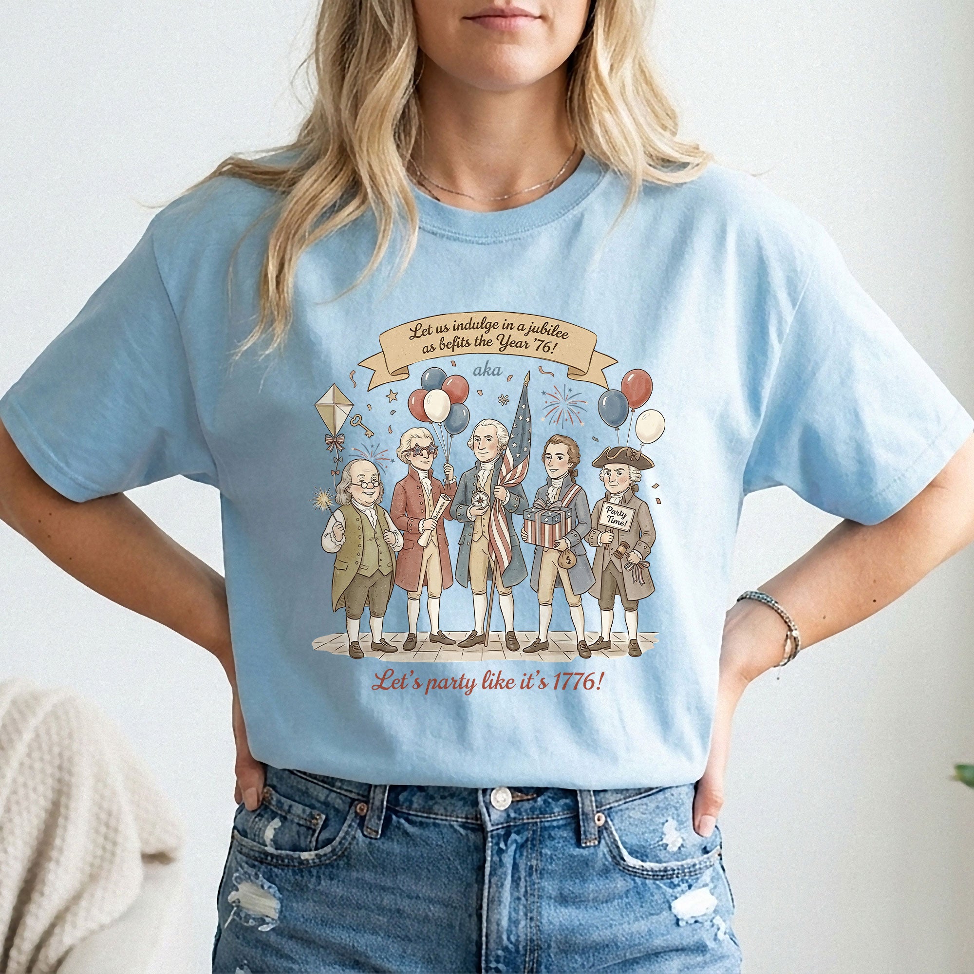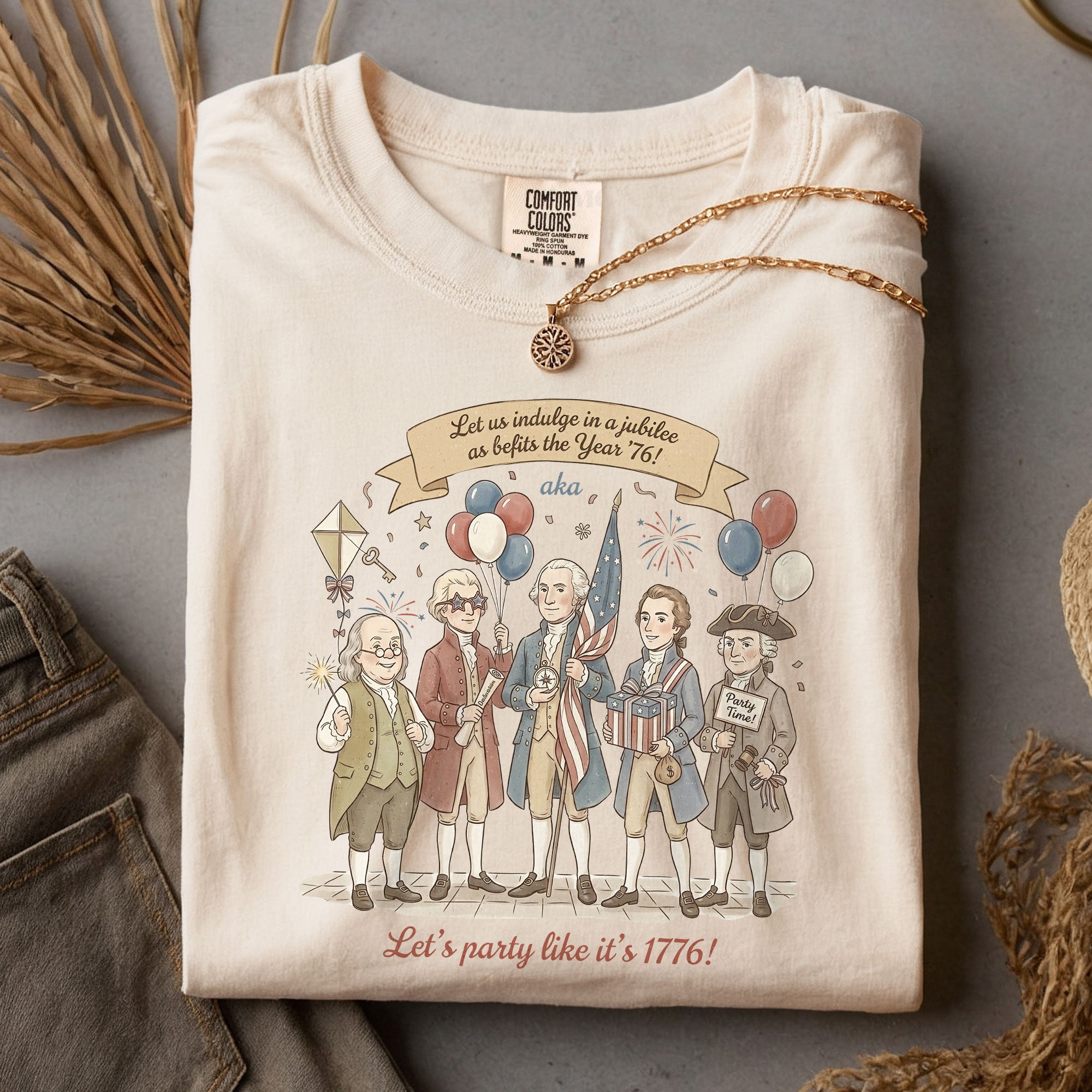 Celebrate American history and patriotism with this vintage-style funny Founding Fathers T-shirt featuring the iconic phrase “Let’s Party Like It’s 1776.” Crafted for comfort and durability, this retro tee showcases a distressed graphic print that captures the revolutionary spirit of 1776. Perfect for Independence Day celebrations, Fourth of July barbecues, historical reenactments, or casual everyday wear to show your USA pride. Ideal gift for history buffs, Constitution enthusiasts, and anyone who loves humorous patriotic apparel. Made from soft, breathable cotton blend fabric for all-day comfort. Available in multiple sizes for men, women, and unisex fit. Embrace the fun side of American independence with this unique graphic tee.