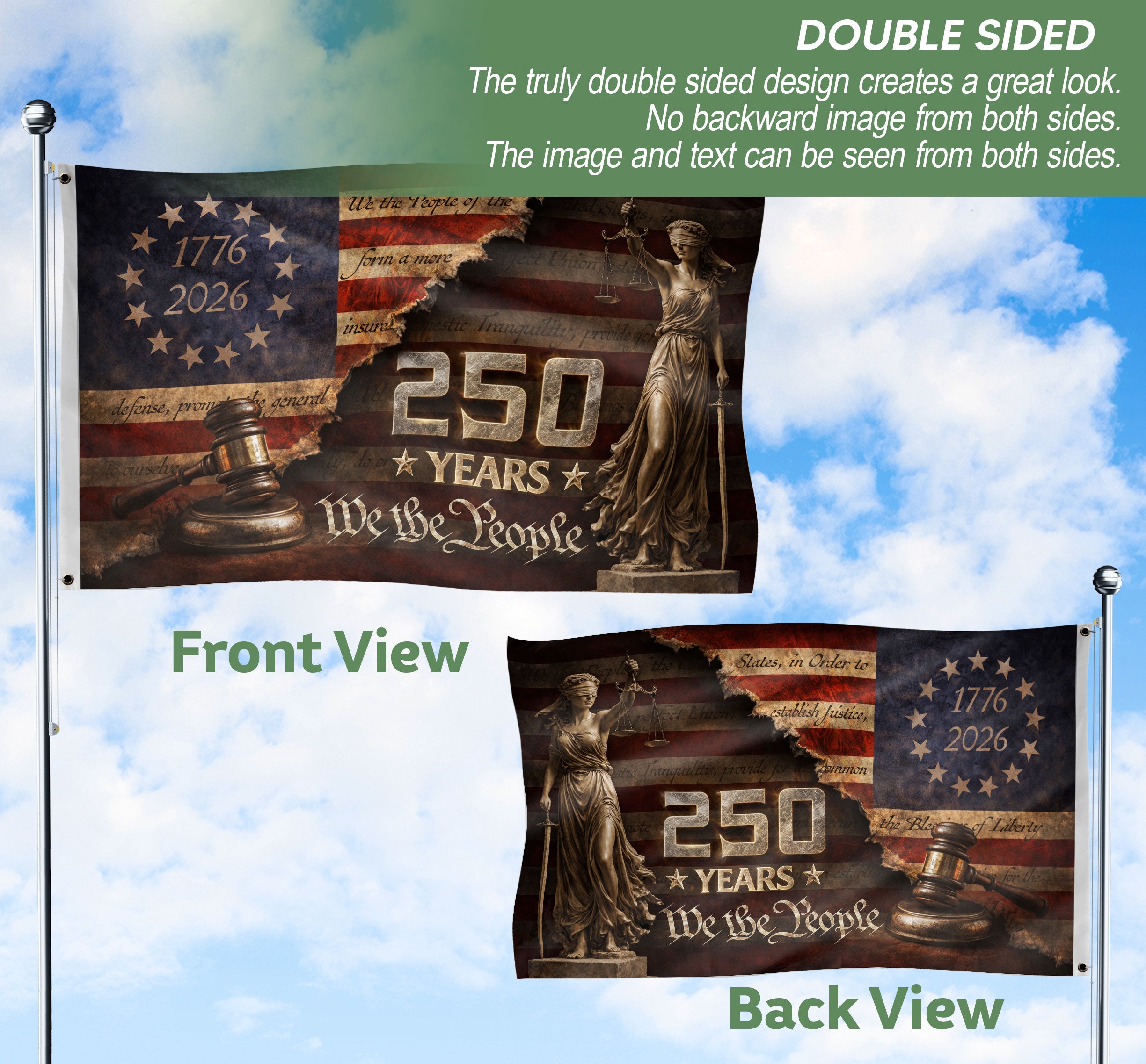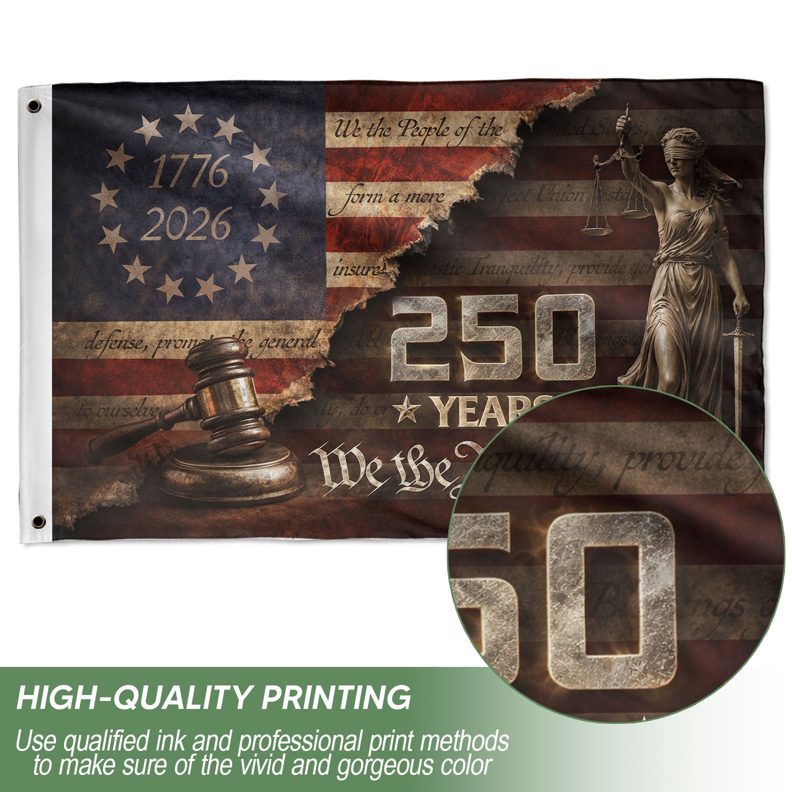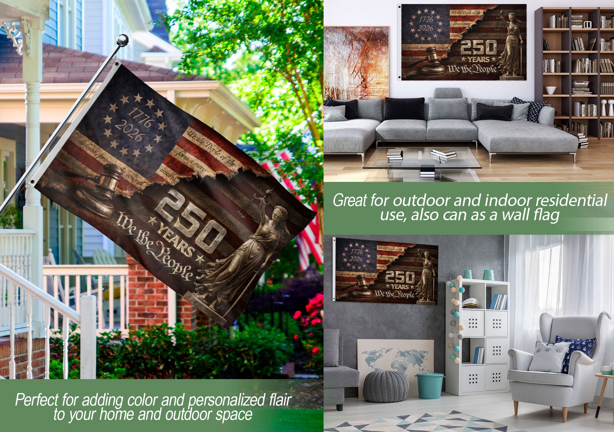 We The People 250 Years Patriotic Lady Justice House Flag 1776-2026