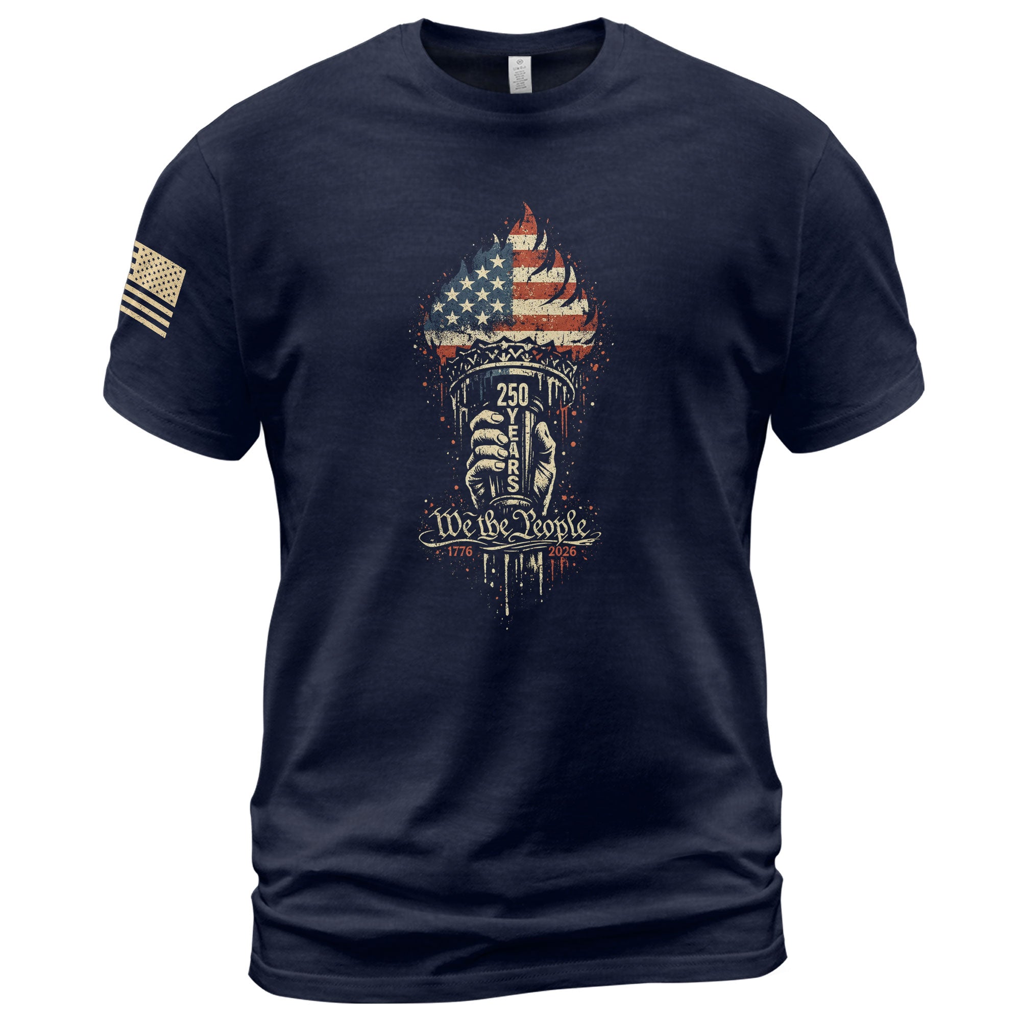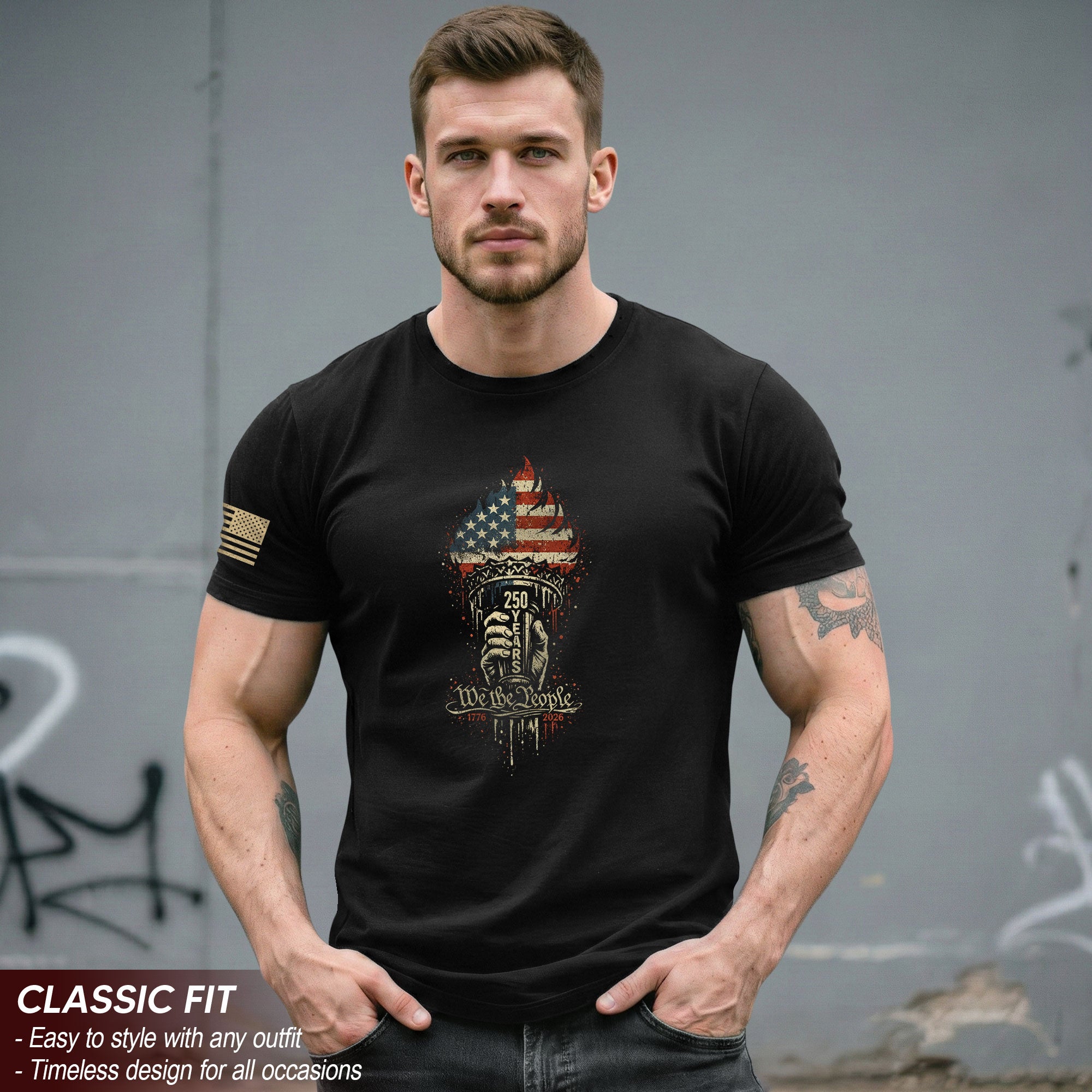 We The People 250th Anniversary 1776-2026 Liberty Torch Patriotic USA Freedom Men’s T-Shirt