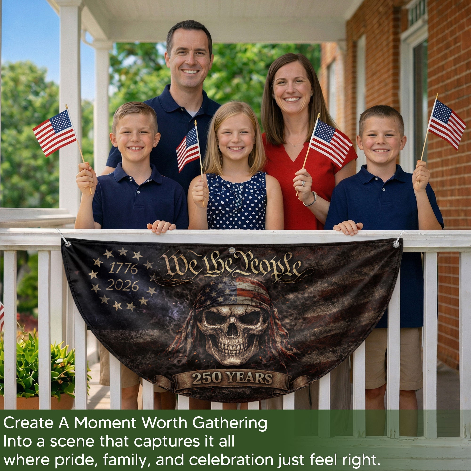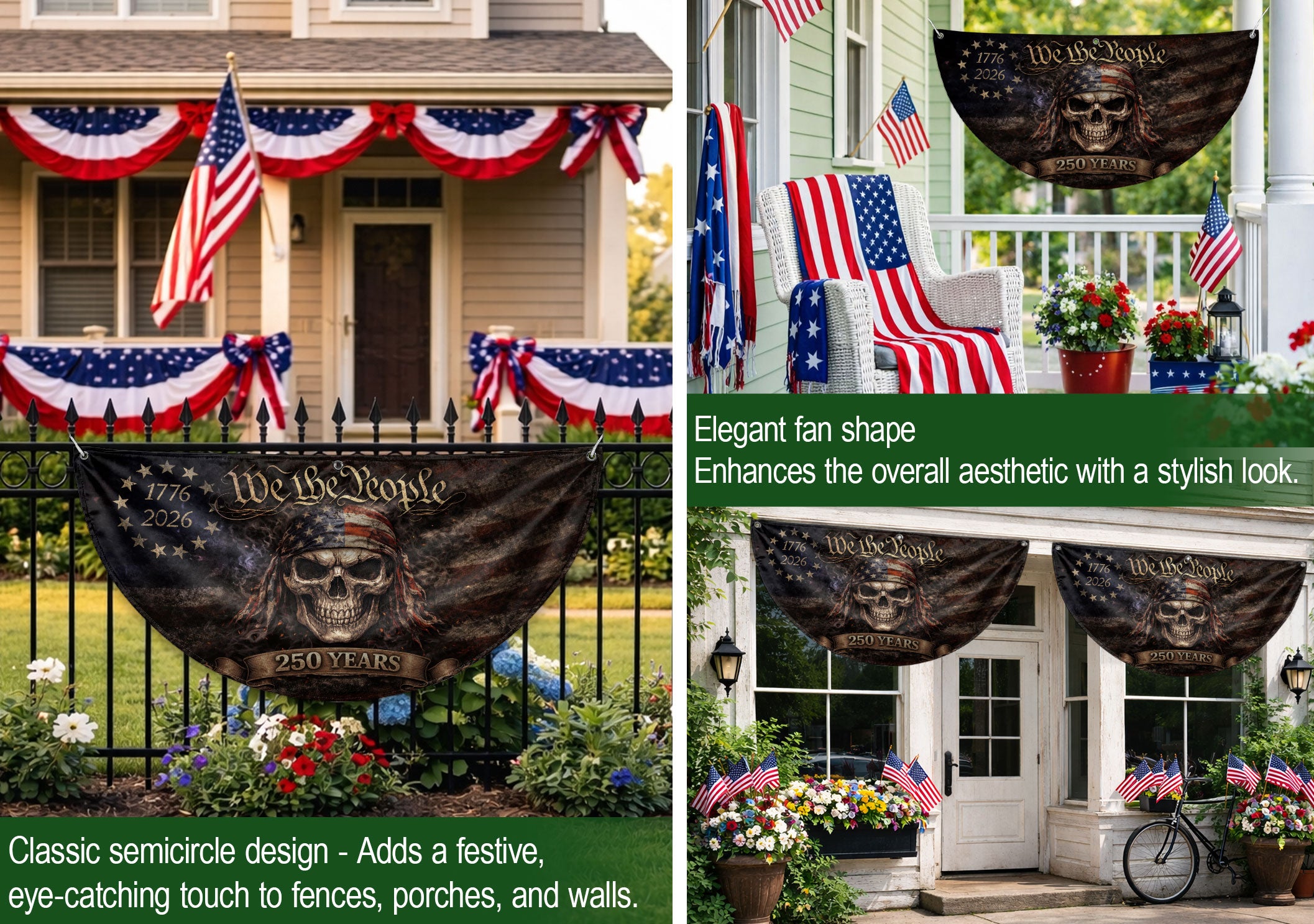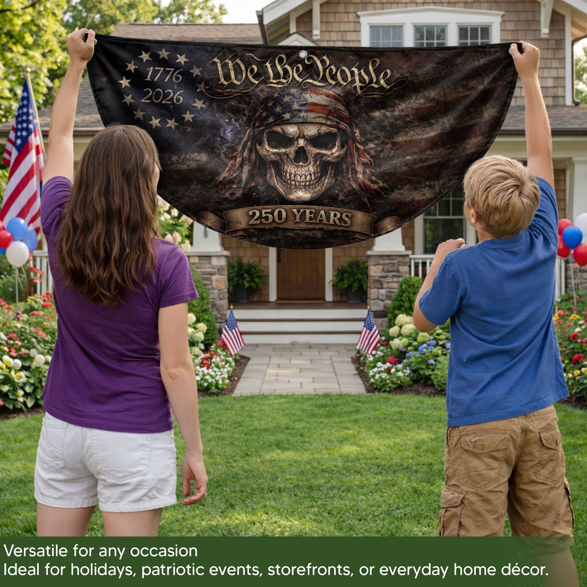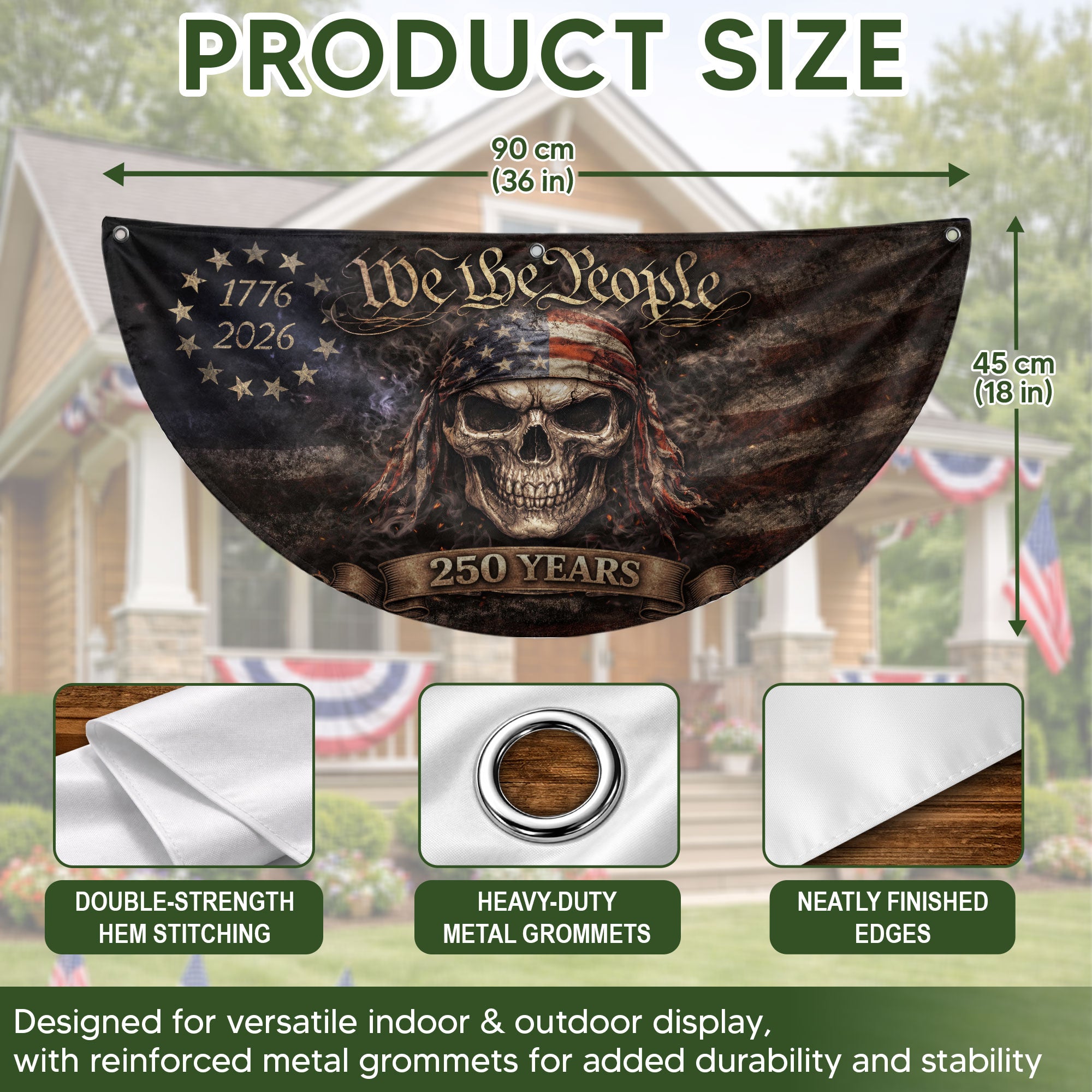 We The People Skull Fence Flag 250 Years 1776-2026 Double Sided Patriotic Banner